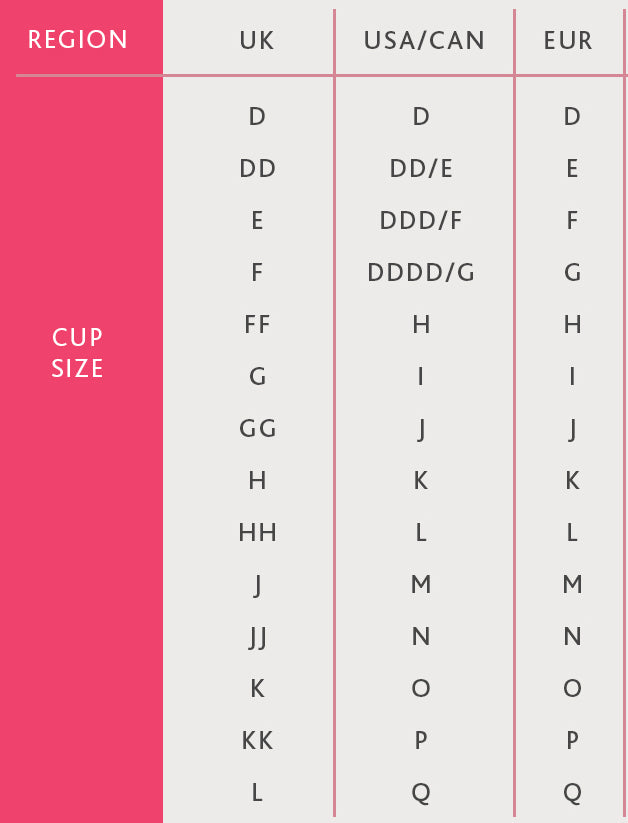 Please note this bra is sized and listed in EURO sizes, we've included a size chart as many of our other bras are listed in UK. The main difference? There is no DD. I found this bra fit quite true to size! If you are typically a DD, size down to a D for a less full shape and up to an E if you are a more full shape