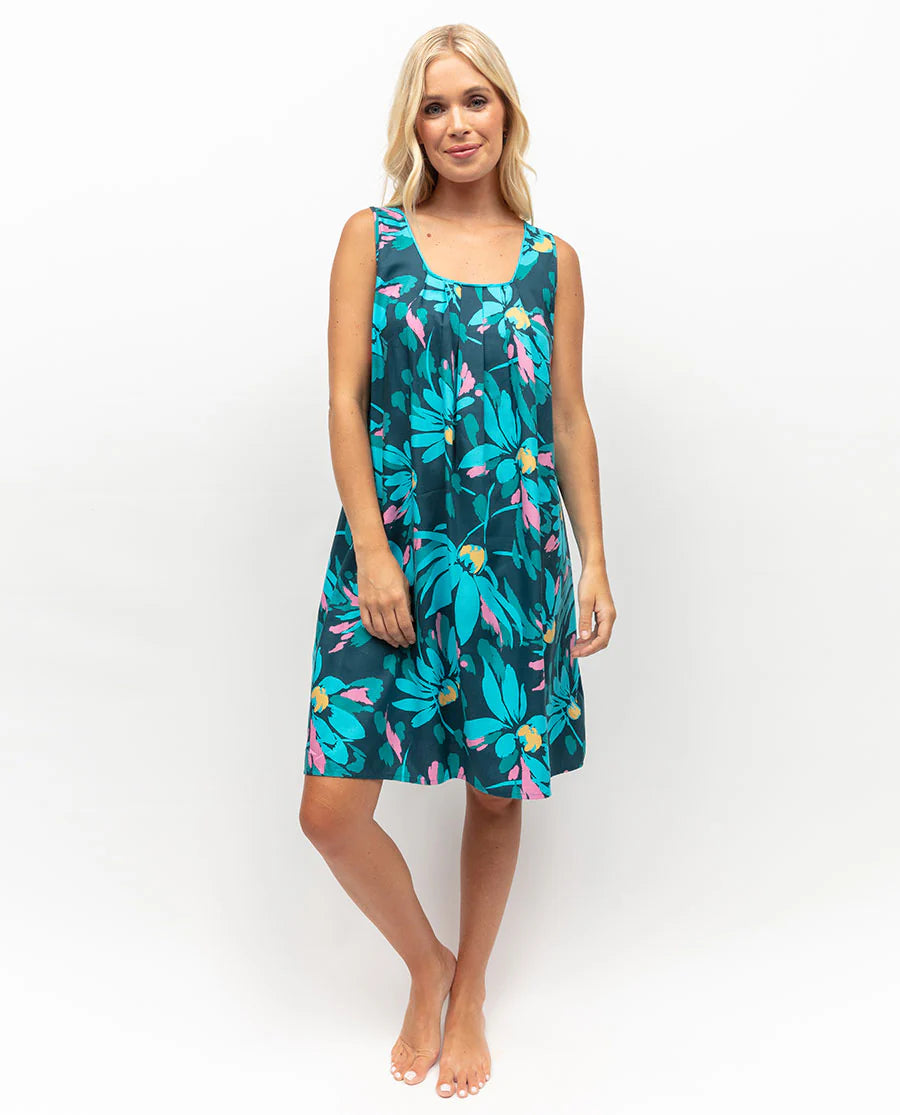 Dream of running through fields of flowers in our Dark Teal Mix Floral Print Short Nightdress. Crafted from super-soft 60% cotton and 40% modal, this nightdress features bright teal mix florals with injections of pink to brighten your morning. The wide shoulder straps and gently rounded neckline create a comfy and flattering silhouette, perfect for warmer months. Enjoy the stylish design and breathable fabric as you unwind in this short nightdress. Indulge in the luxury of beautiful loungewear, bringing a touch of elegance to your bedtime routine during the upcoming spring and summer seasons.
