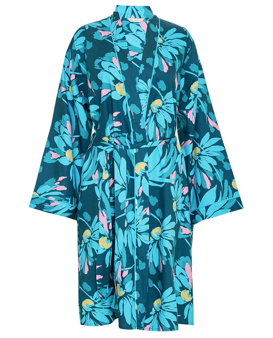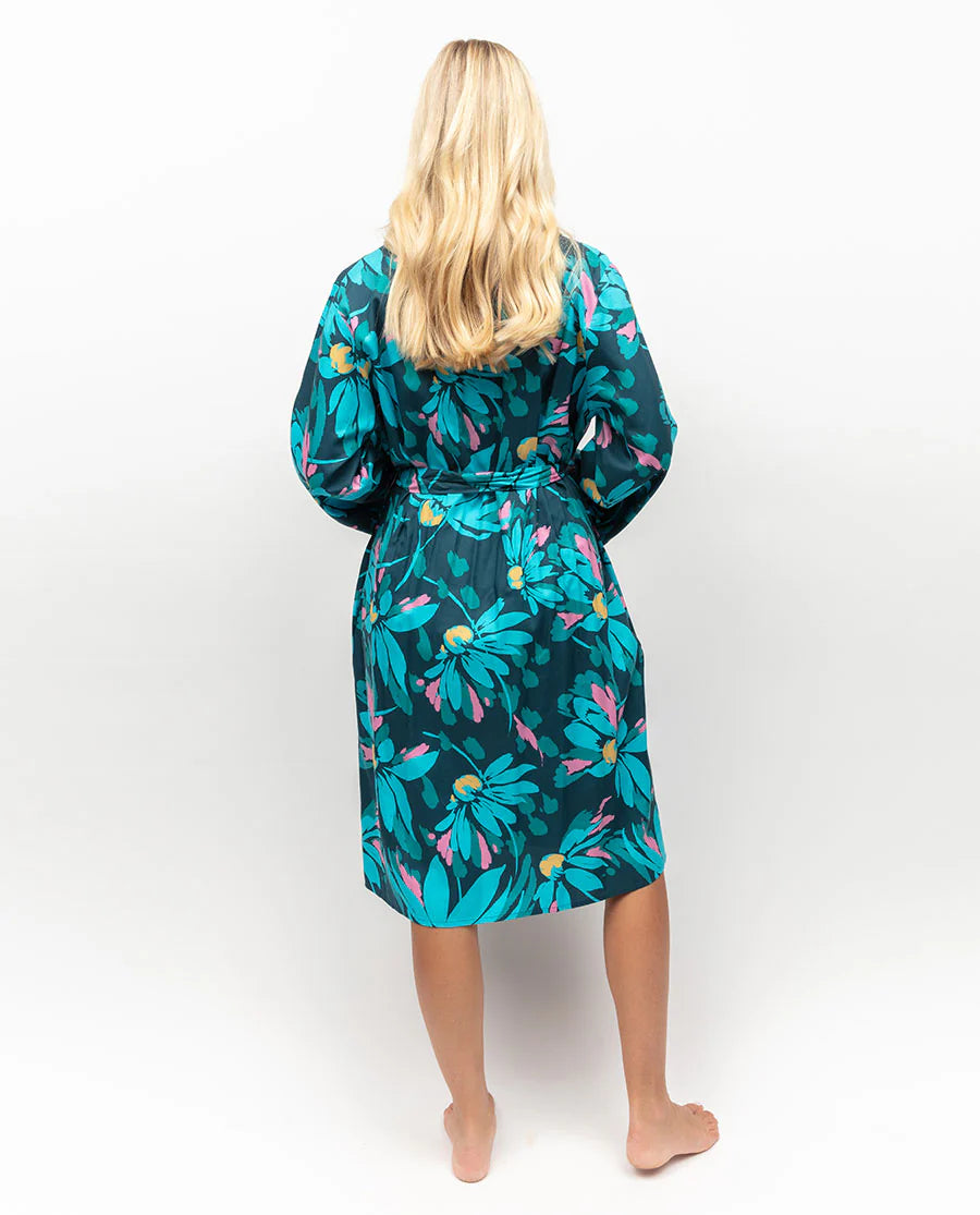Complete your bedtime look with our Dark Teal Mix Floral Print Long Sleeve Short Dressing Gown. This luxurious dressing gown, crafted from super-soft 60% cotton and 40% modal, features bright teal mix florals with injections of pink to match with the pyjamas.