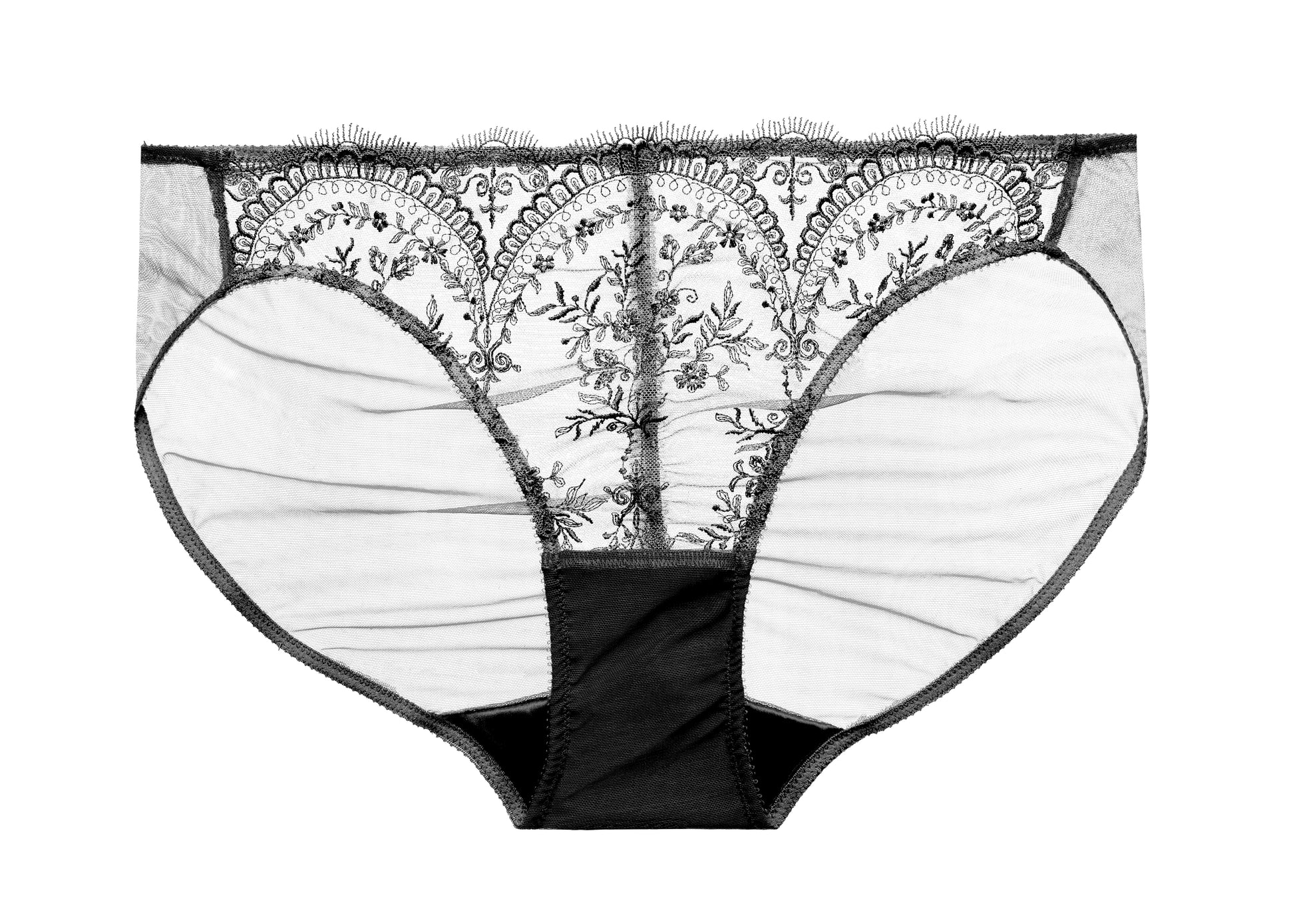 Previously Severine was thong only, but now there's a beautiful bikini brief to choose as well! Which displays that stunning embroidered lace even better!