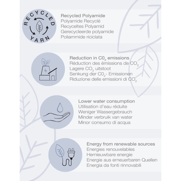 DUBLIN ECO 70 DEN Opaque eco-friendly pantyhose, satin finish, cotton gusset, all-through, flat seams. Made with recycled yarns.