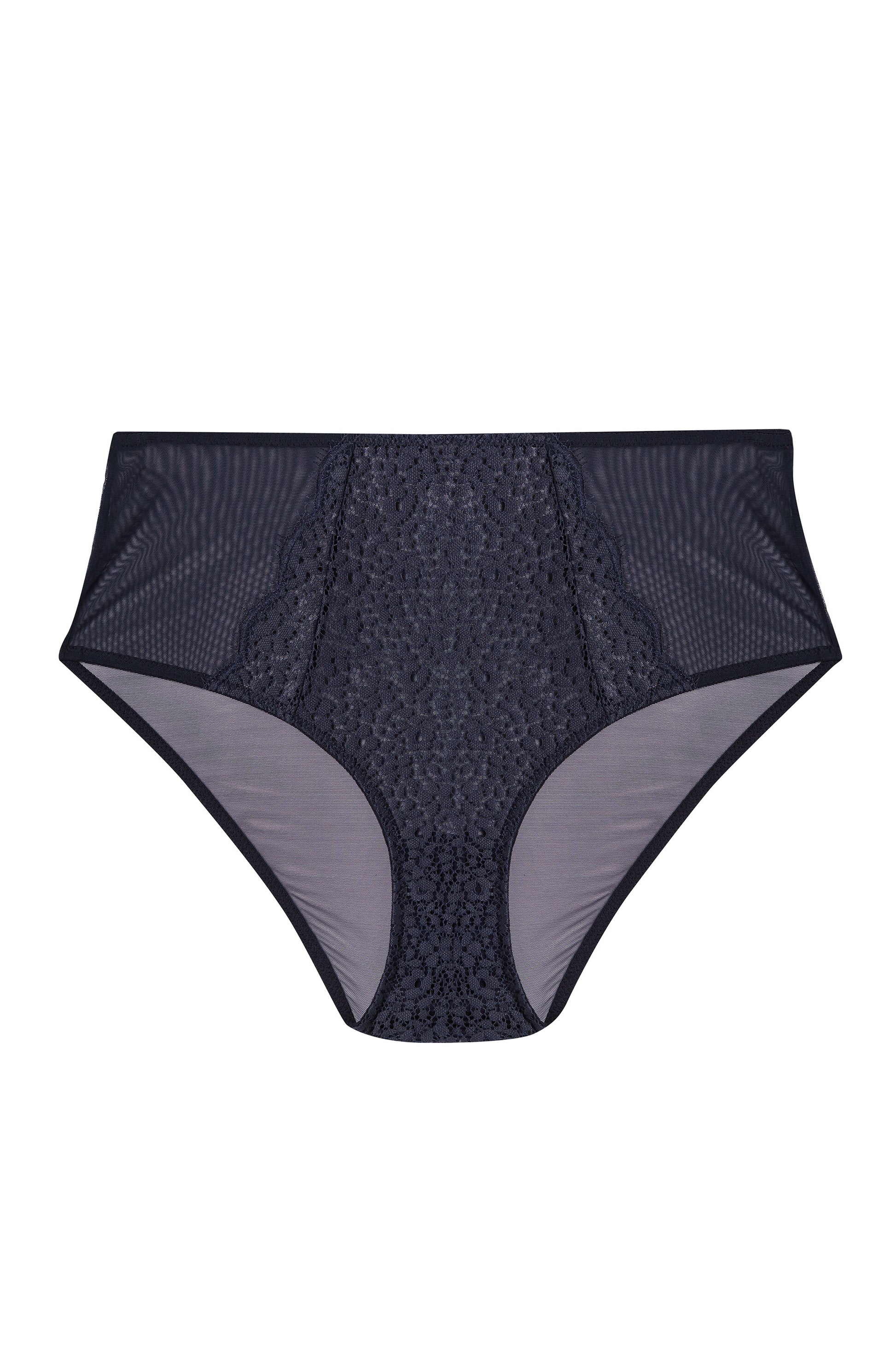 The Emma Navy Highwaist Briefs are the ultimate comfort for every day. With pretty lace detailing at the front and sheer mesh panels on the hips and the back they are subtle but sexy. The highwaisted design is perfect for hugging your curves. Match with our Emma Bra for the perfect everyday look.