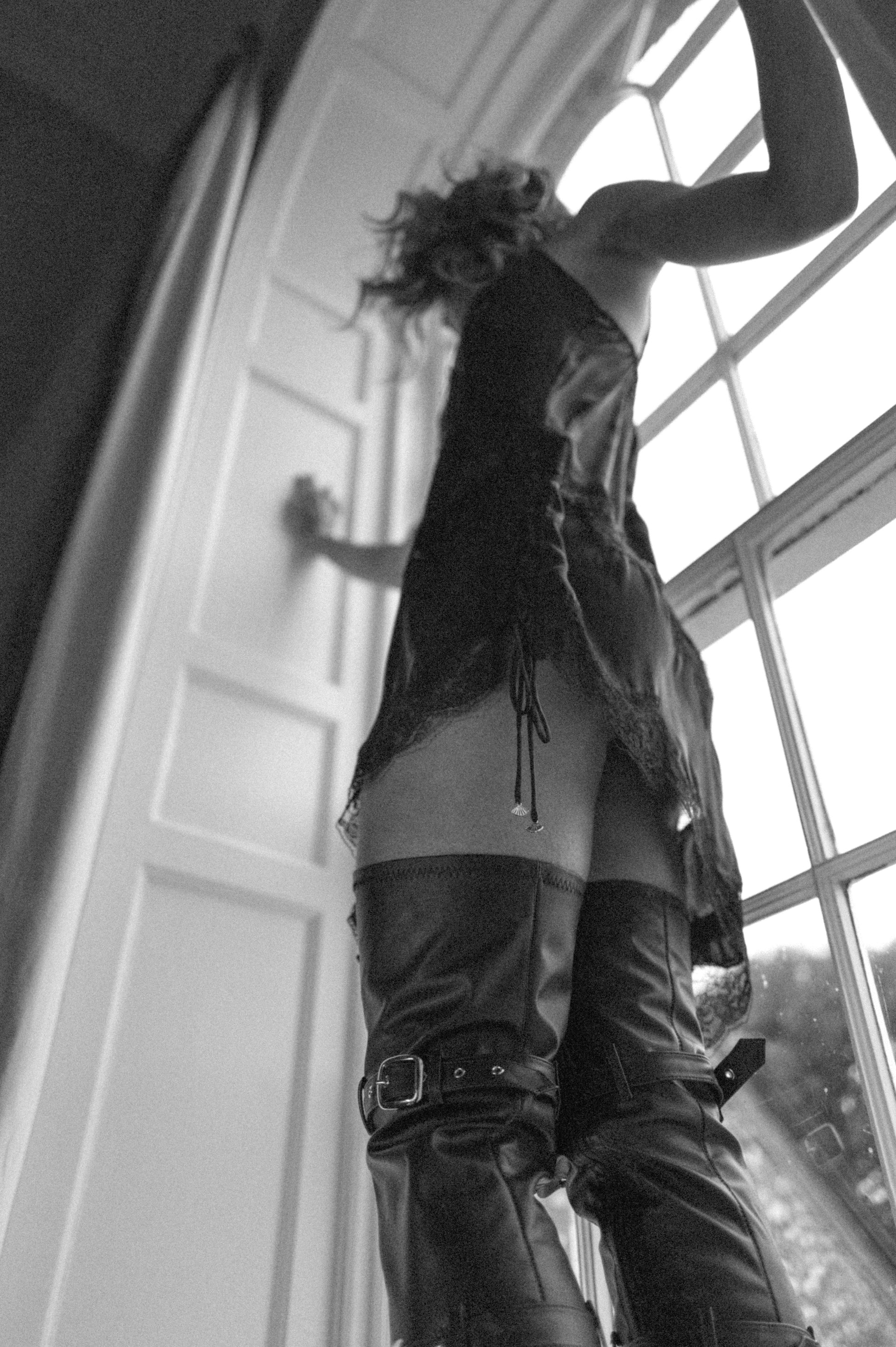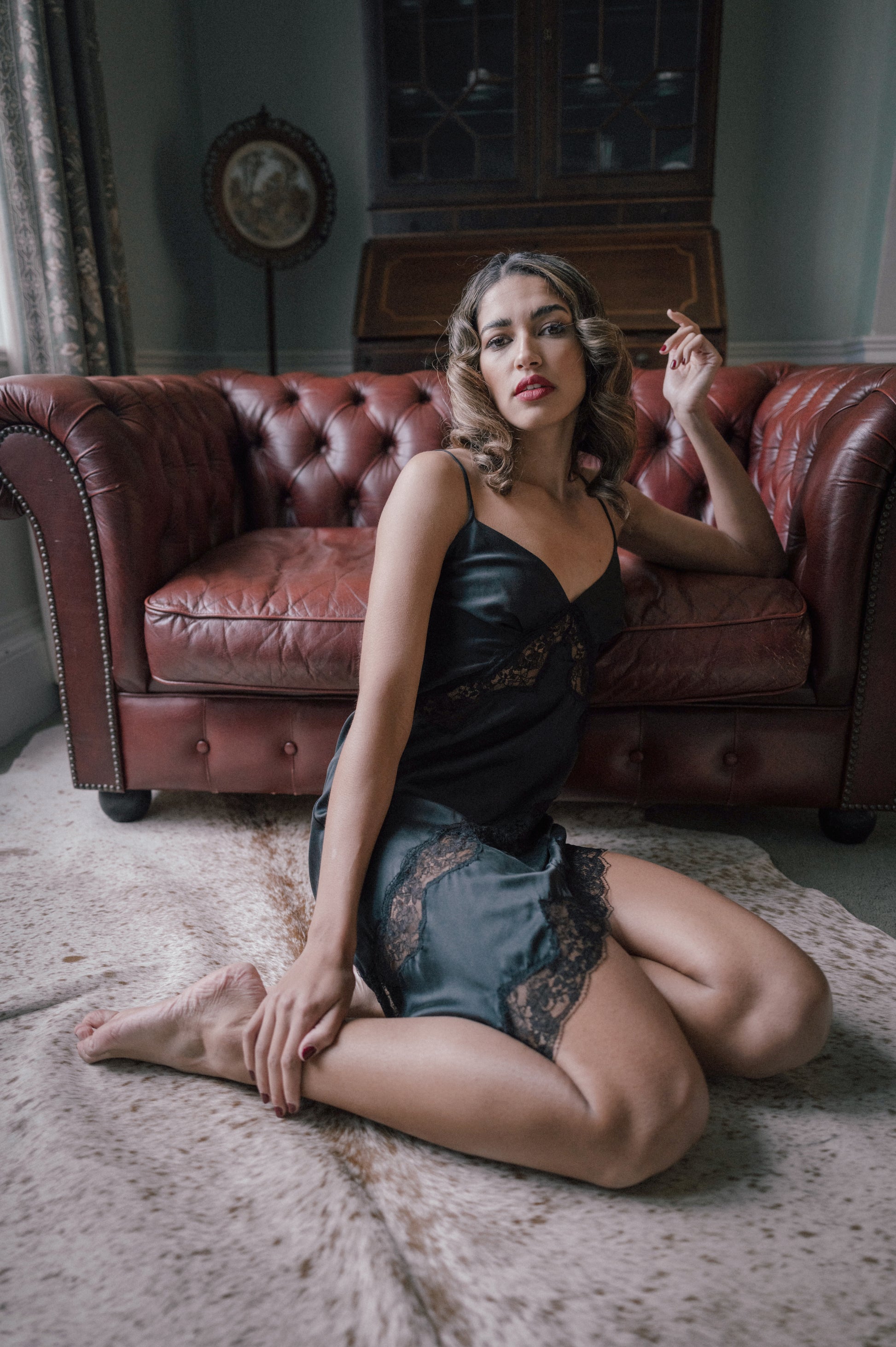 *Please note the overall length of this slip dress sits 10cm lower than shown so the diagonal lace at the crotch sits mid-thigh for wearing out.