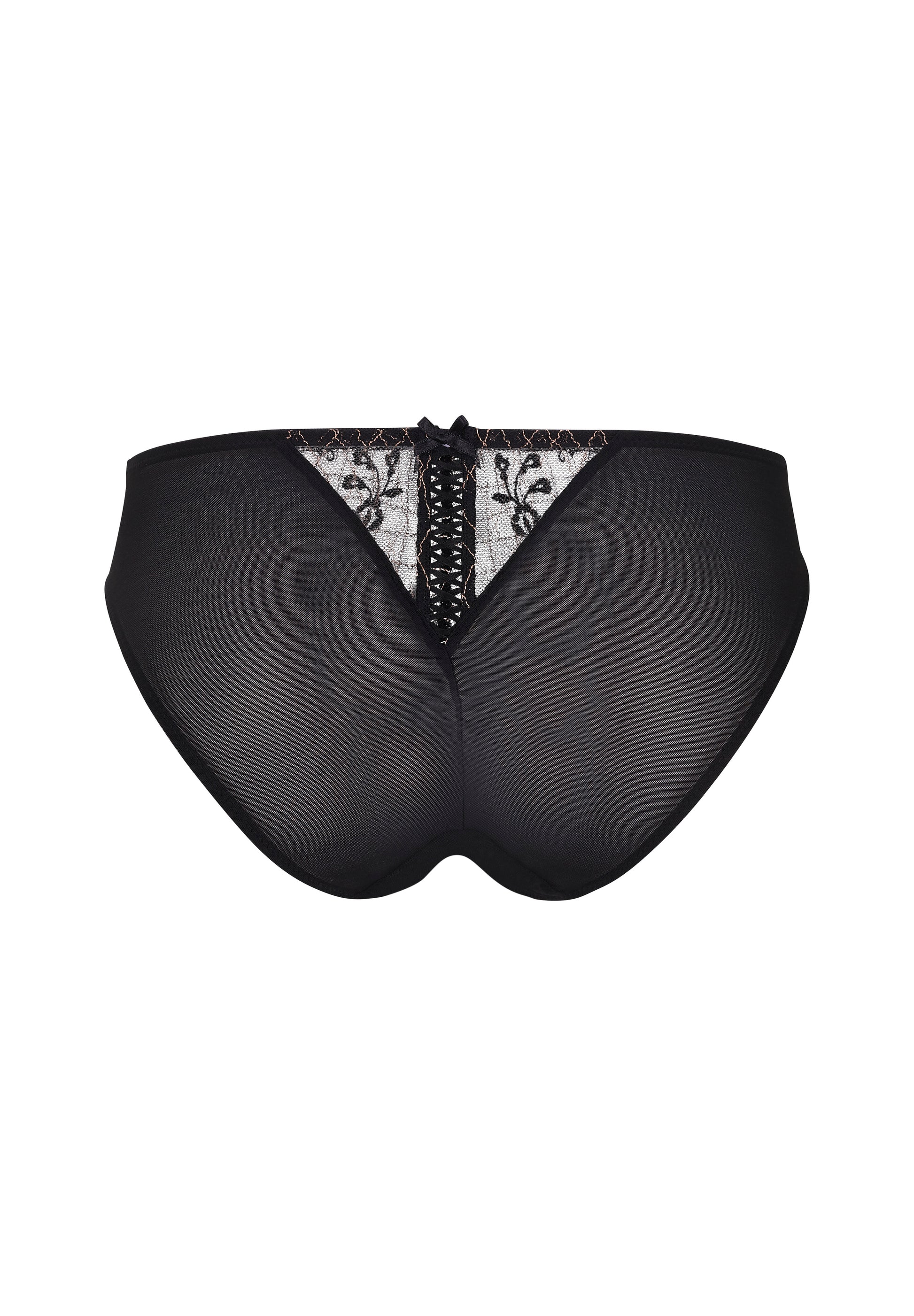 Bold and effortlessly chic,the Lacage Brief in Black combines intricate embroidery with metallic yarn for a touch of glamour. With lace-up trims for a decorative finish, this brief offers a flattering fit with its elastic waistband and high-cut legs. A perfect blend of artistry and modern flair, designed to elevate your everyday lingerie collection
