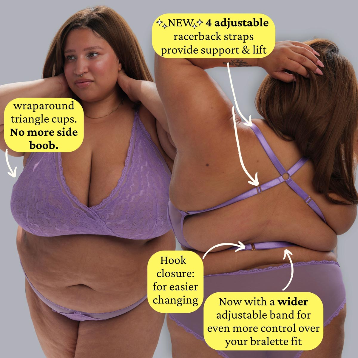 - Contour your bralette shape with fully-adjustable raceback straps.