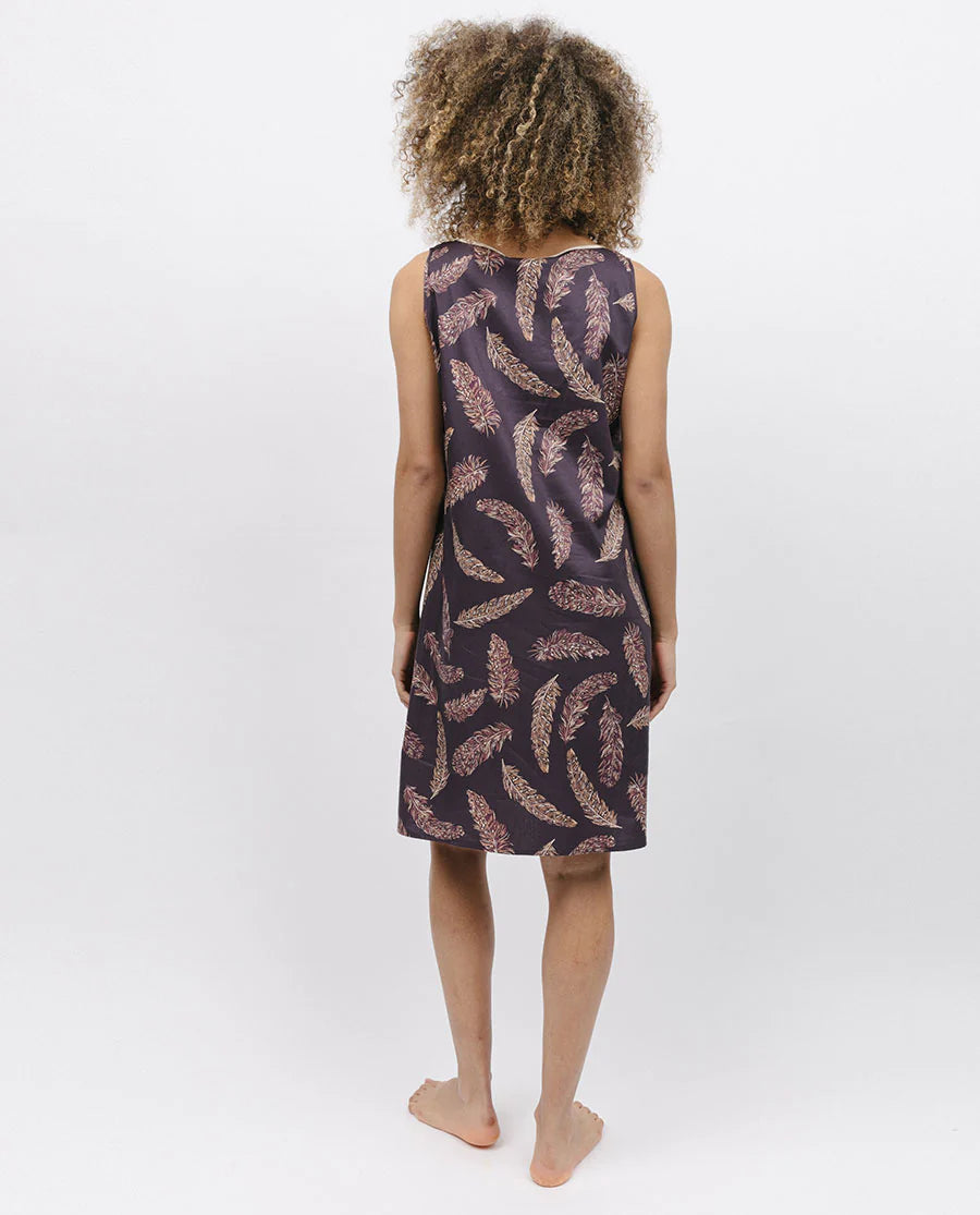 Indulge in the luxury of our brown feather print short nightdress from our Lana collection, the perfect addition to your nighttime wardrobe.