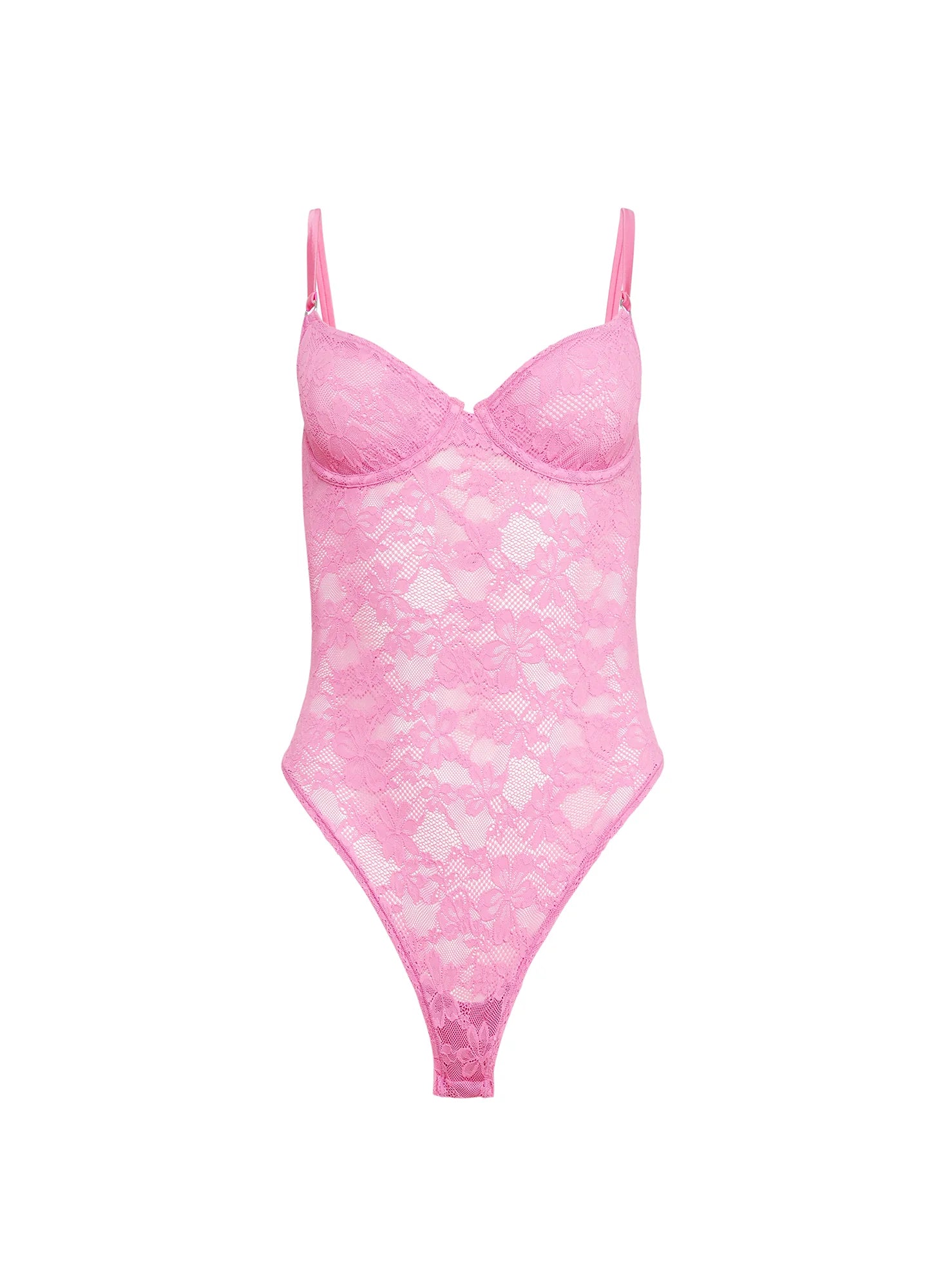 Le Stretch Lace Bodysuit in Bisou By Fleur Du Mal - XS-XL