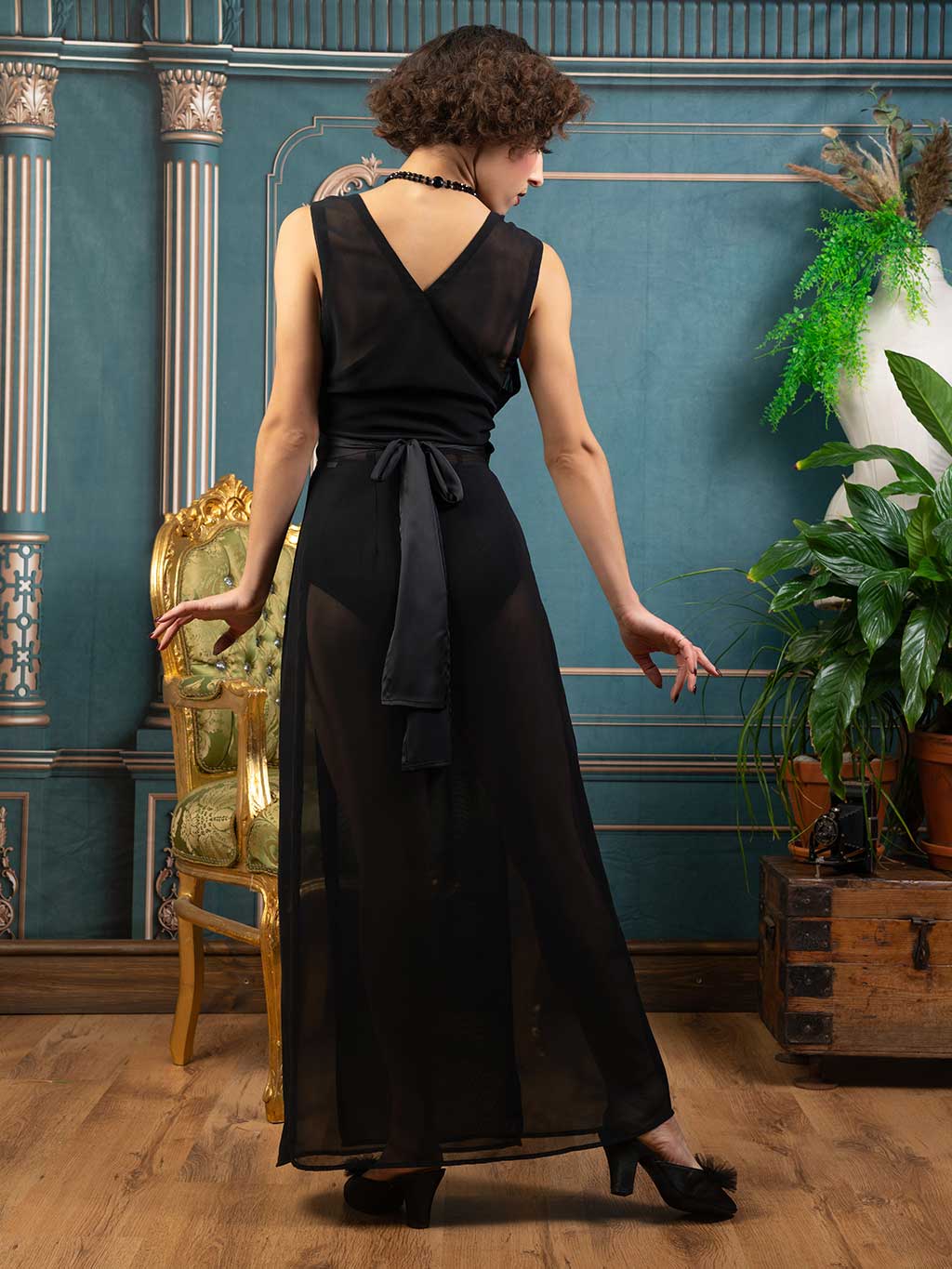 This long semi sheer nightgown is made from soft black georgette and black satin.