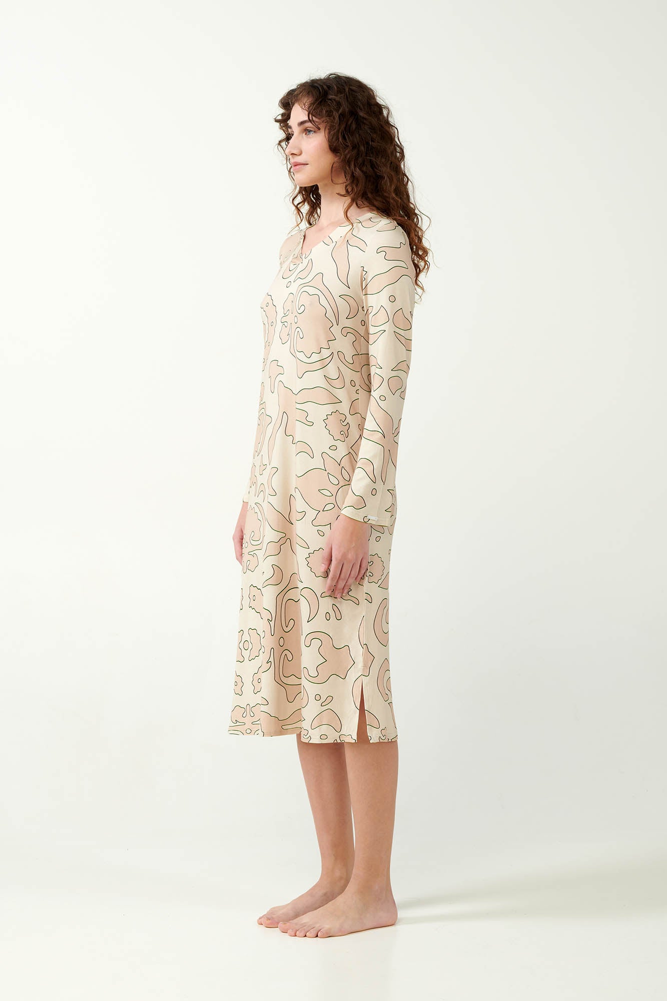 An elegant long sleeved Nightgown with a V neck, the Nadine nightgown skims your curves and is cut with enough room to be comfortable and still chic!