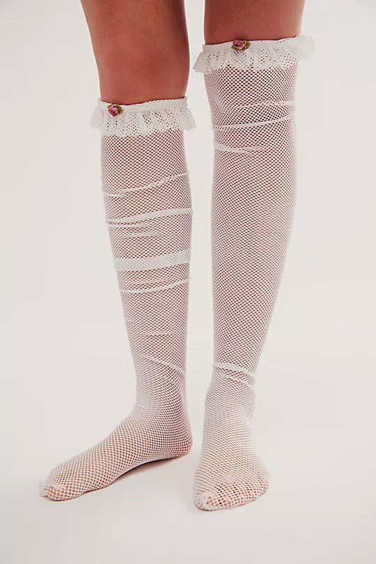 Nothing But Net Thigh High Socks in Black and Off White By Only Hearts