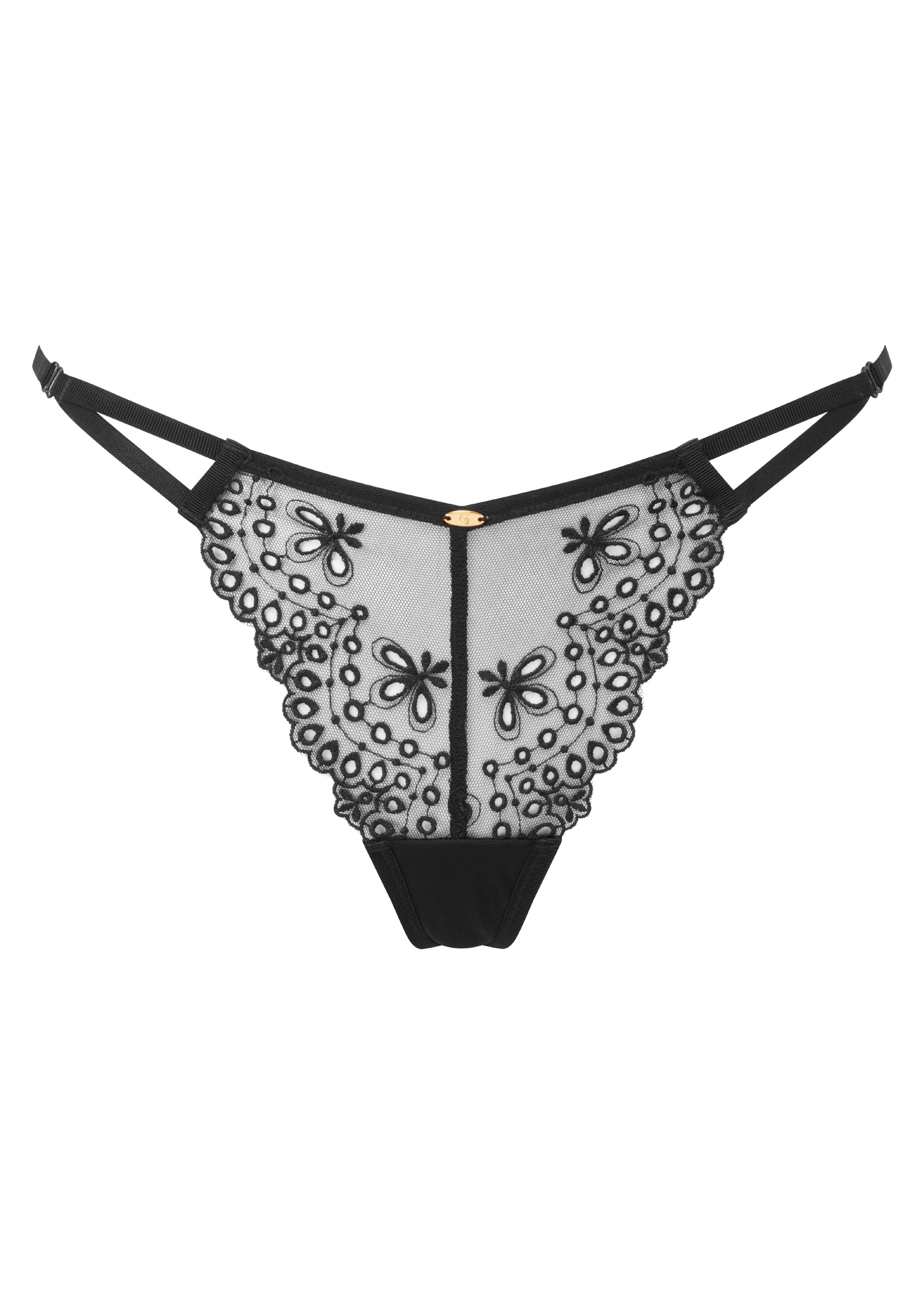 Graphic cut-out embroidery onto a fine tulle teamed with mesh for a lightweight semi-sheer look. Seaming & strapping detailing makes Rebel a bold, standout range with statement gold hardware for added glamour.