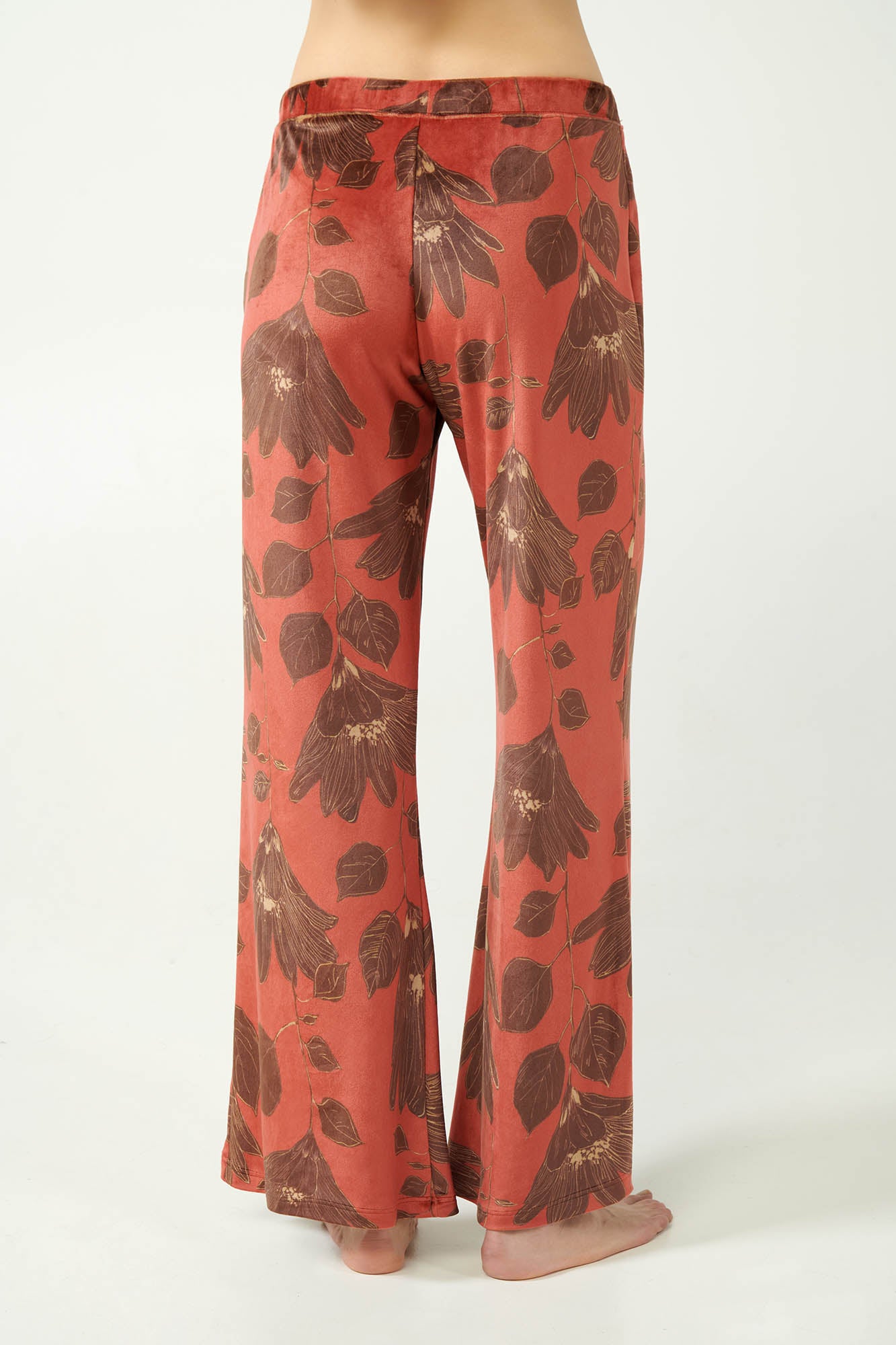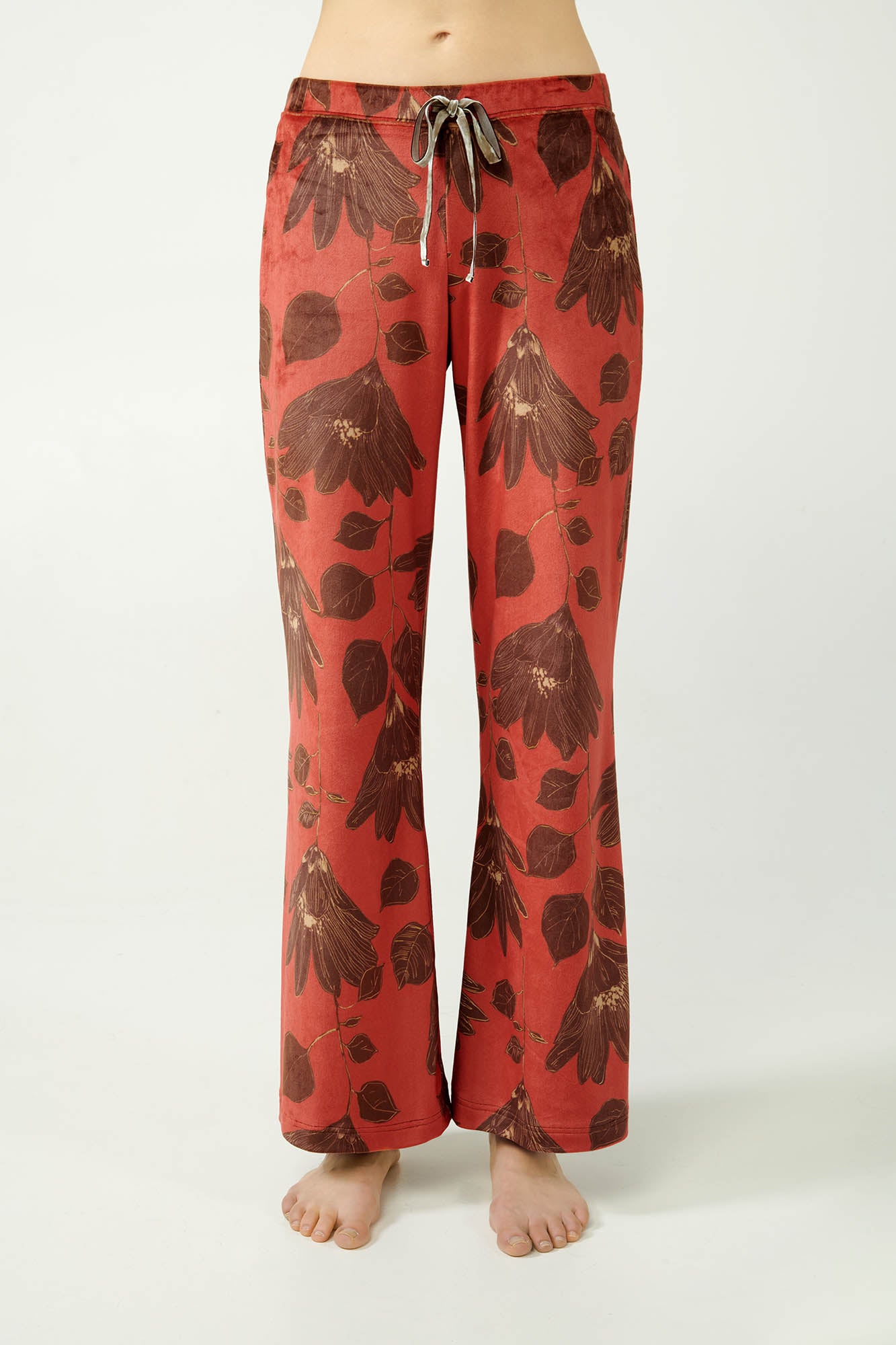 Red Nova Velvet Lily Print Pants By Vamp - S-3XL