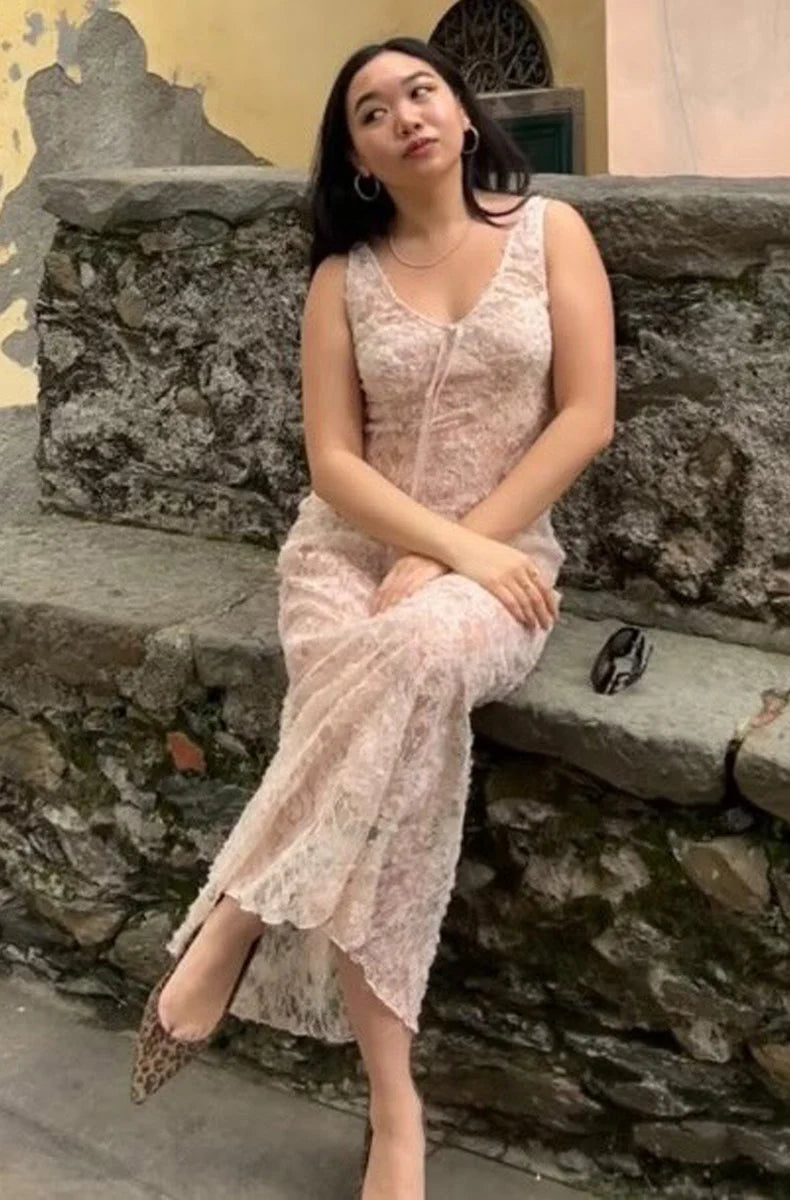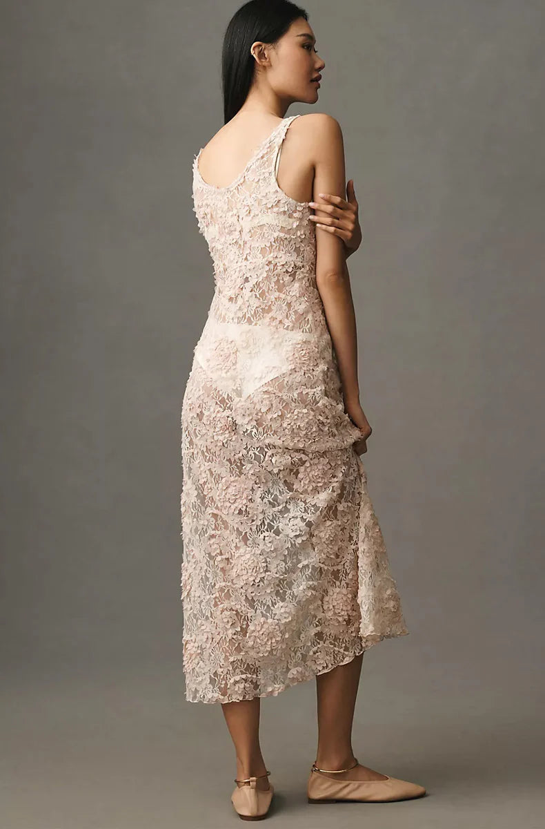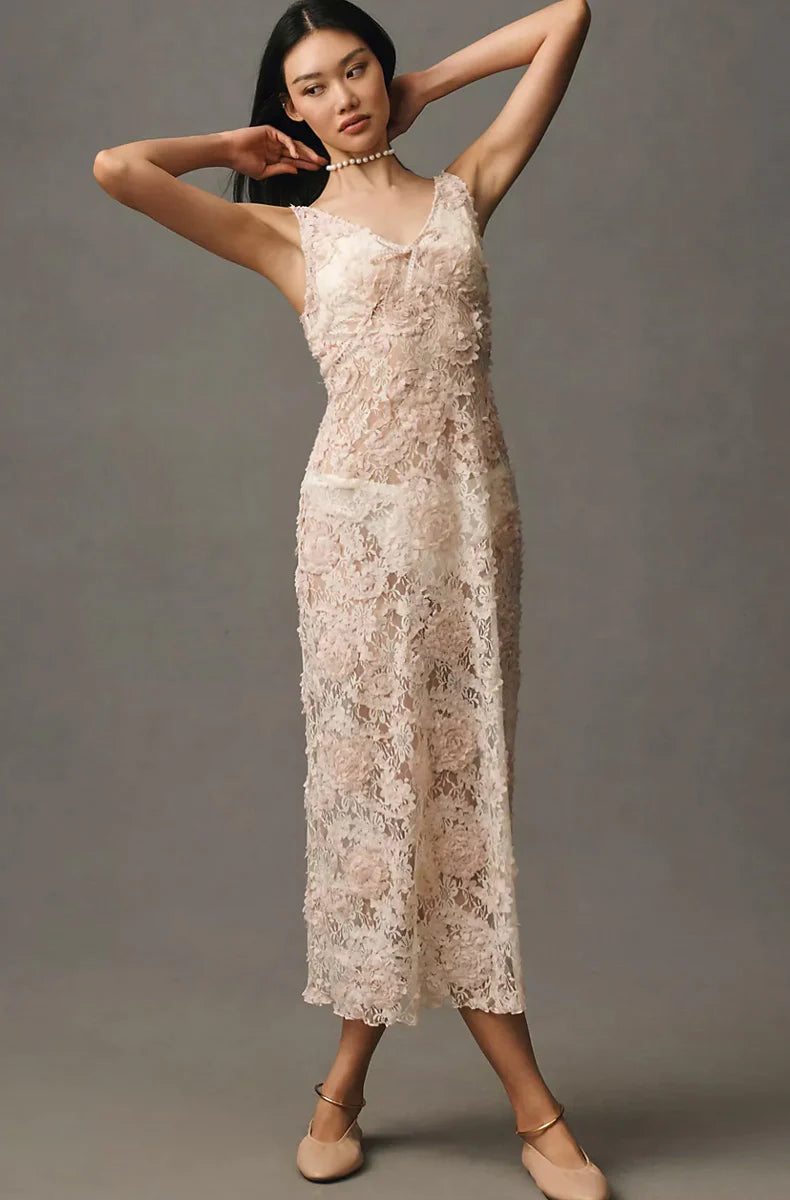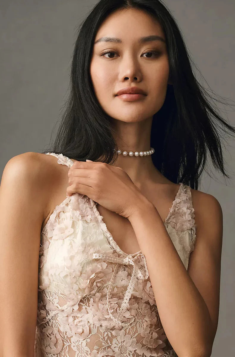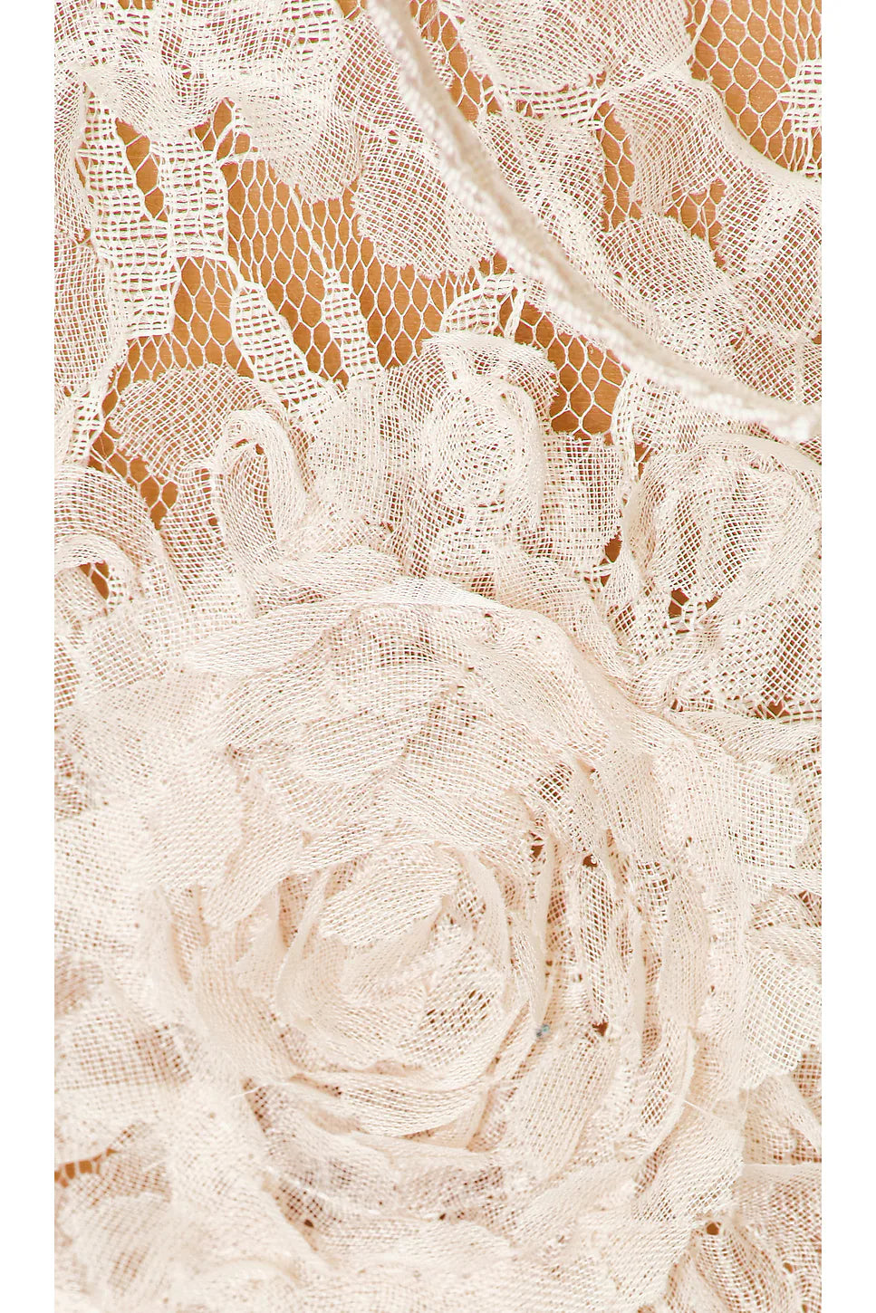 Made from sheer deadstock embroidered floral detail lace in the palest blush with bow detail at the bust.