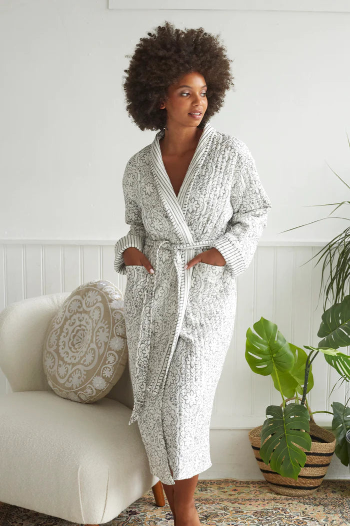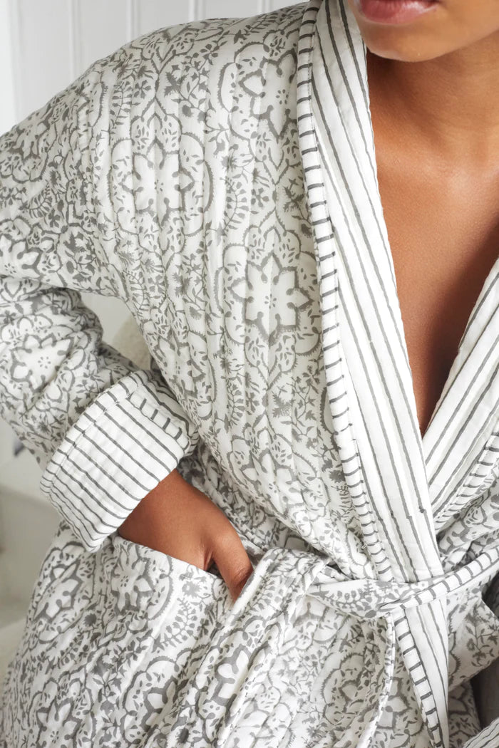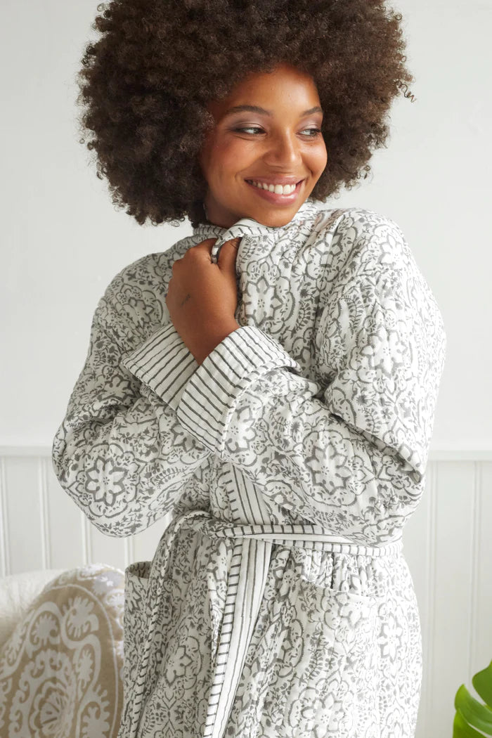 Star Jaal Quilted Organic Cotton Robe in Ash Grey By Dilli Grey - M/L
