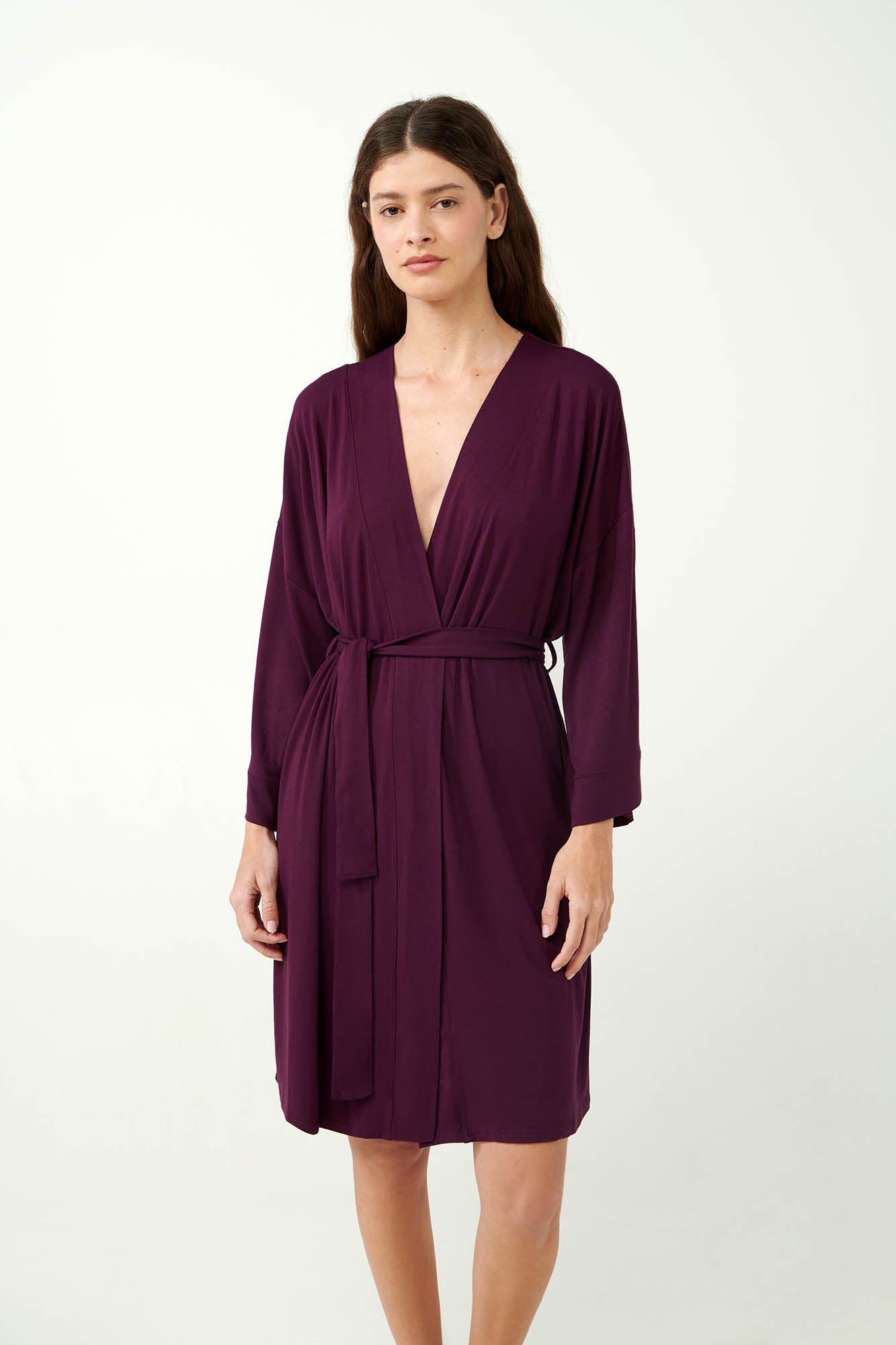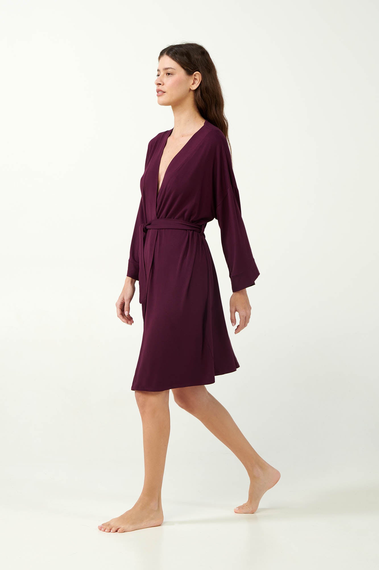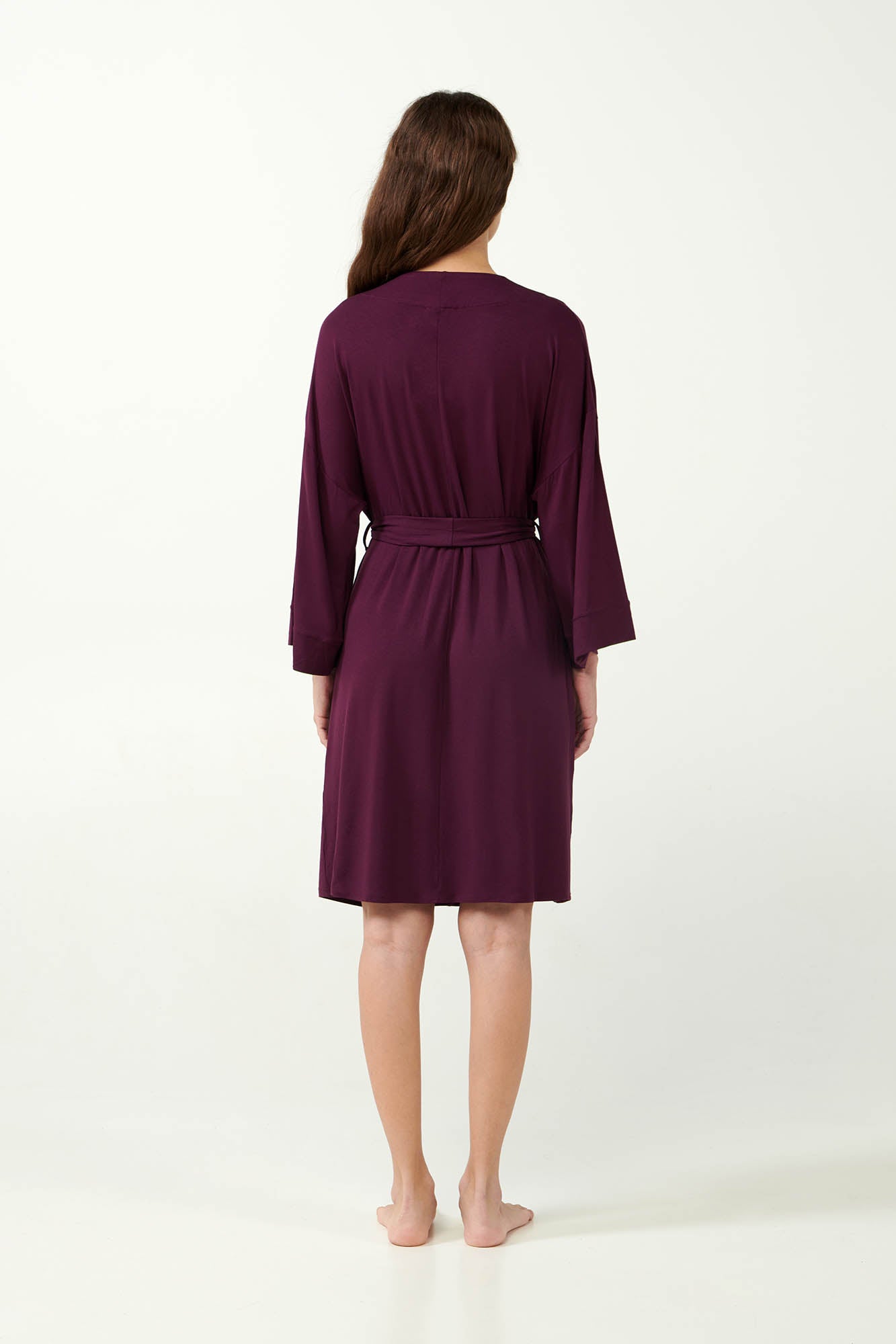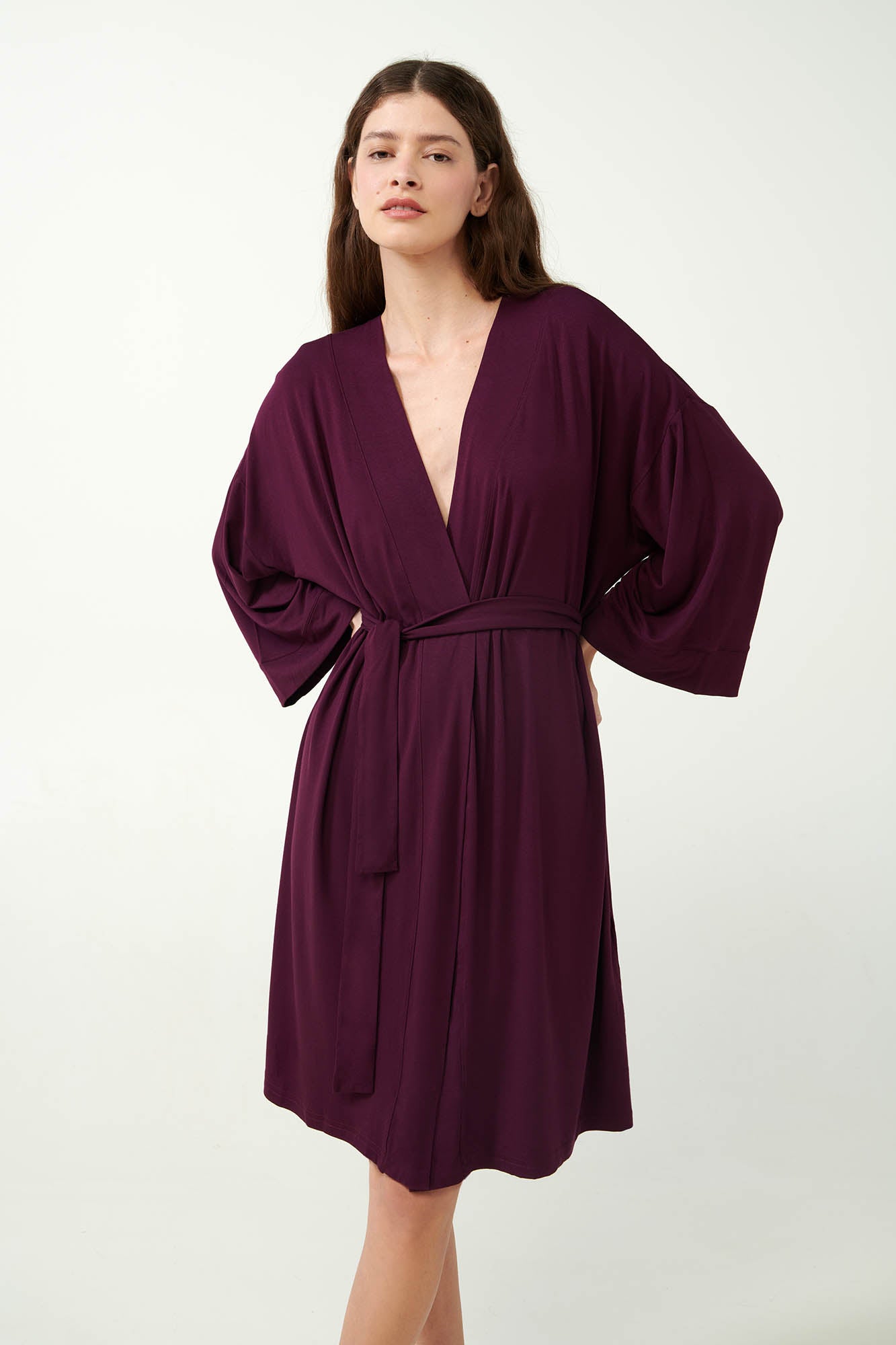 Wrap yourself in comfort with this soft robe, designed for effortless elegance. Made from soft and luxurious viscose jersey, it features a classic crossed design with a belt for a customizable fit. The relaxed sleeves add to its comfort, making it ideal for lounging or relaxation. This robe is a perfect blend of simplicity and style, offering a cozy and flattering look for any time of day.
