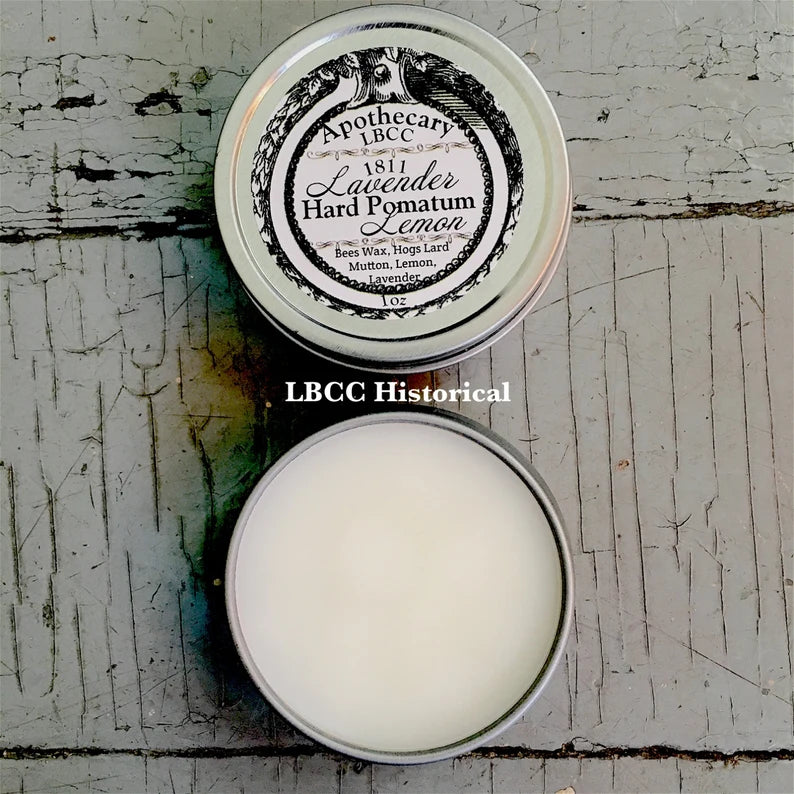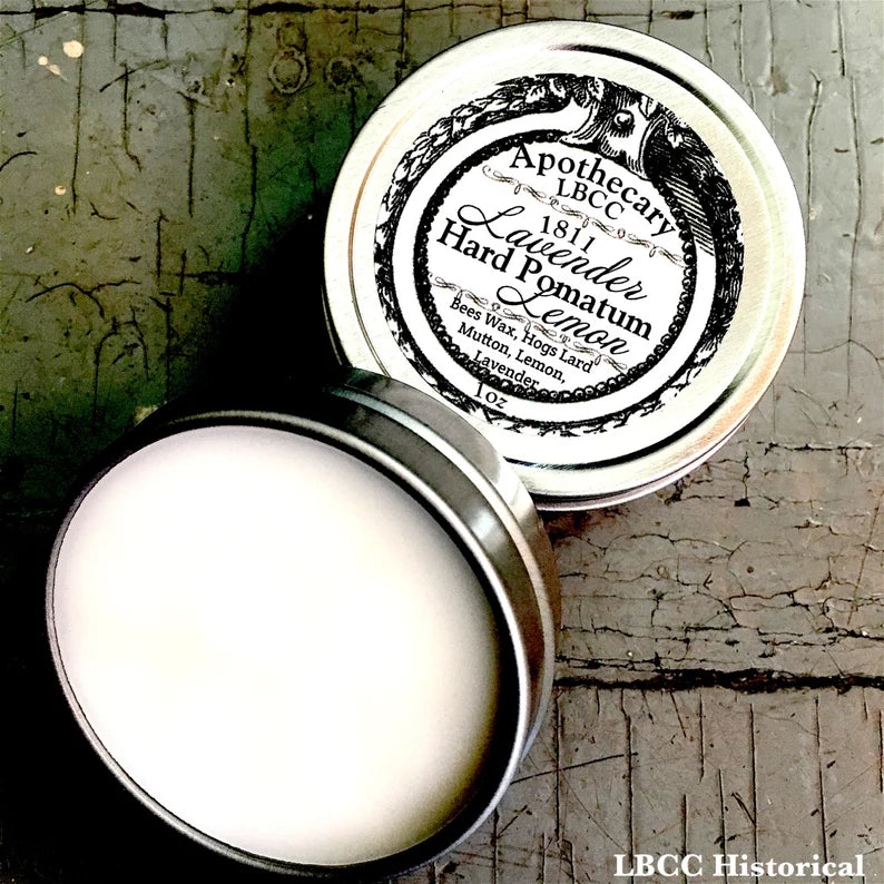 Have you been waiting for a Regency Pomade? Well the wait is over. This is unique because it is made from 2 types of fats- Mutton and Hog, just as it was historically. Both have wonderful nutrients for your hair and skin. I also love the fact that the recipe called for Lavender and Lemon to be combined. Not only does this regency Pomade smell amazing- it will also help moisturize your hair and calm fly aways as well as condition the scalp.