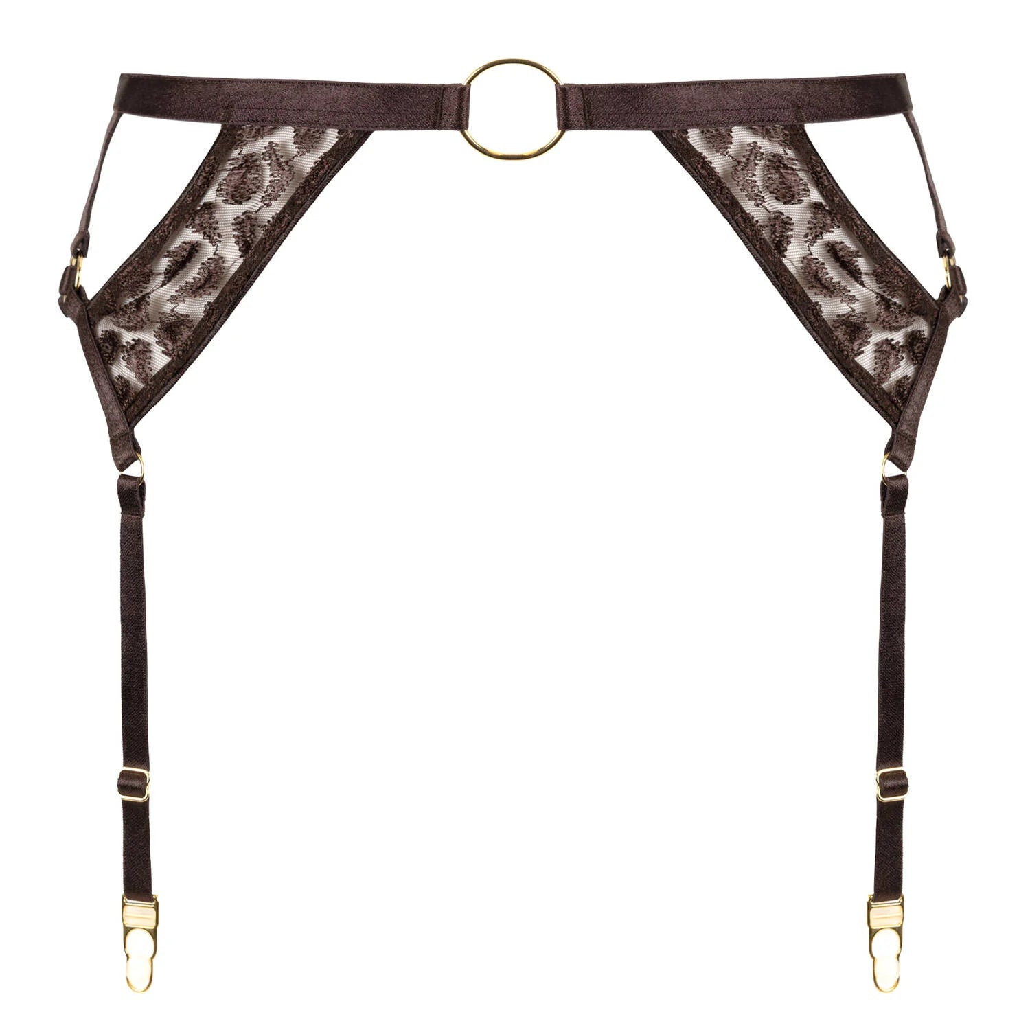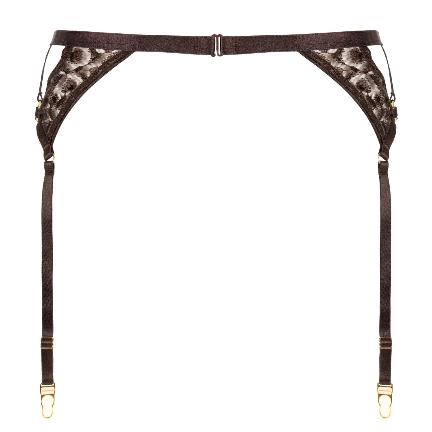 Modern and luxurious, the Crazy in Love suspender belt accentuates the waist with its sexy animal-inspired embroidery combined with elegant, iridescent straps to create a subtly contrasting effect. Refined gold details at the front and sides shimmer against the skin and showcase the hips. A beautiful belt!