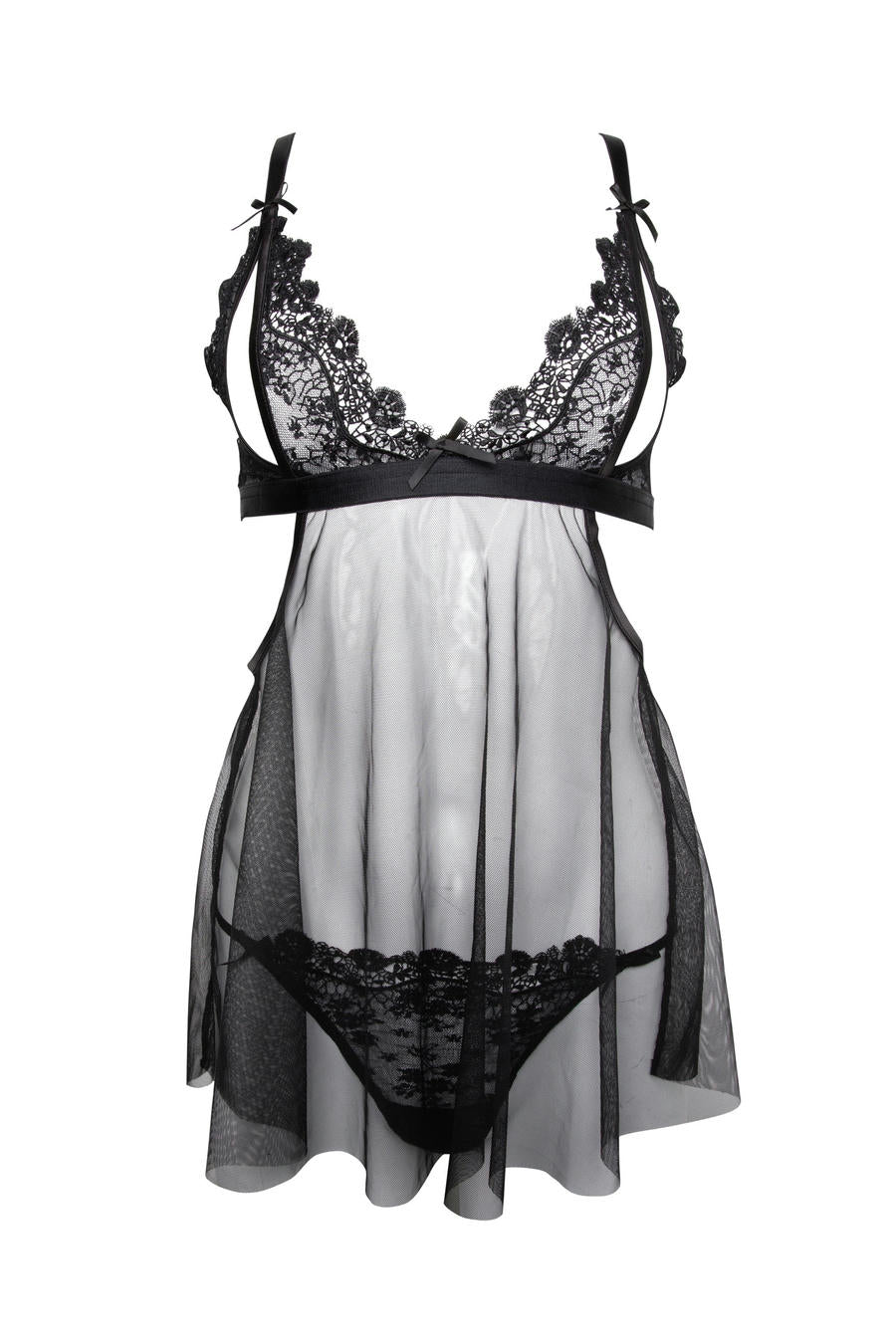 • Black Mesh and Lace Babydoll with matching strappy Thong