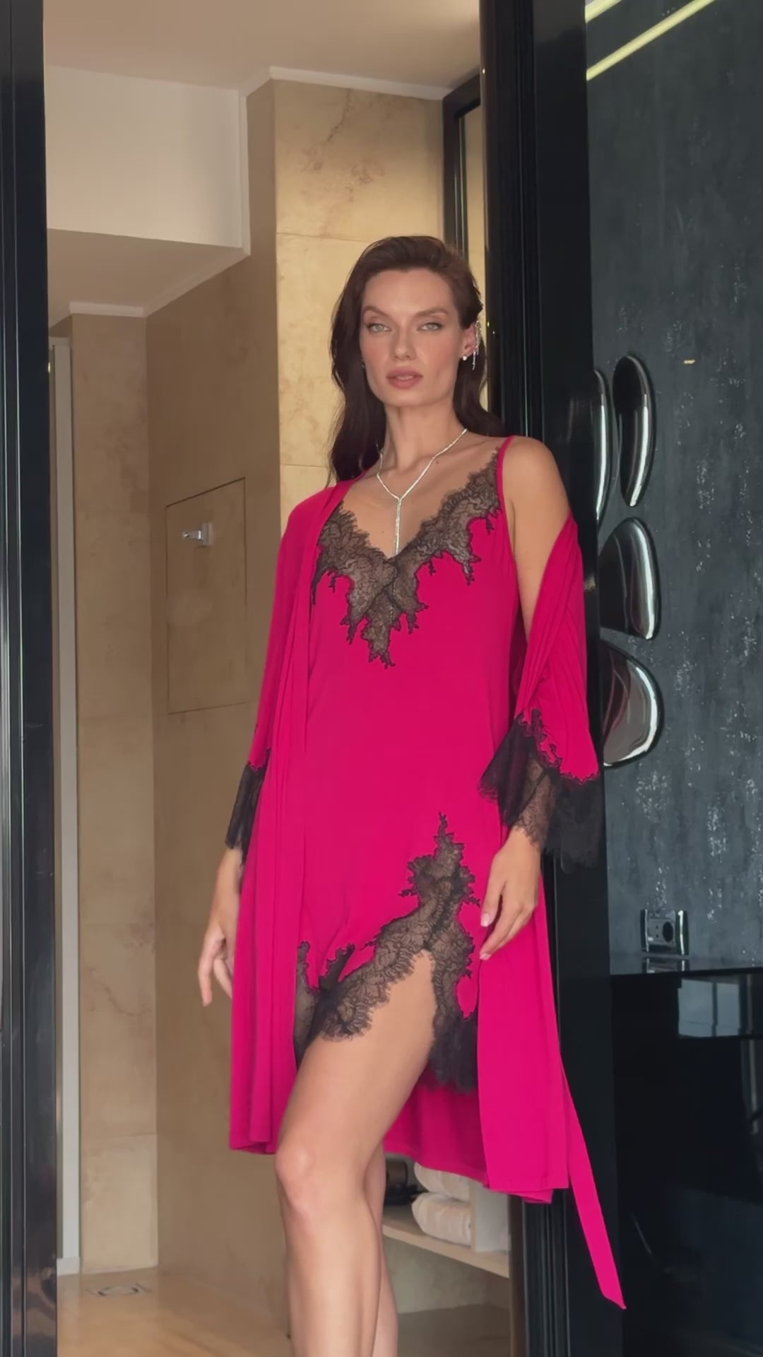 Made from a luxurious fuchsia bamboo jersey and trimmed in contrasting inky black fine French chantilly lace - this chemise is very glamorous and yet, perfect for everyday - a dream to sleep in!
