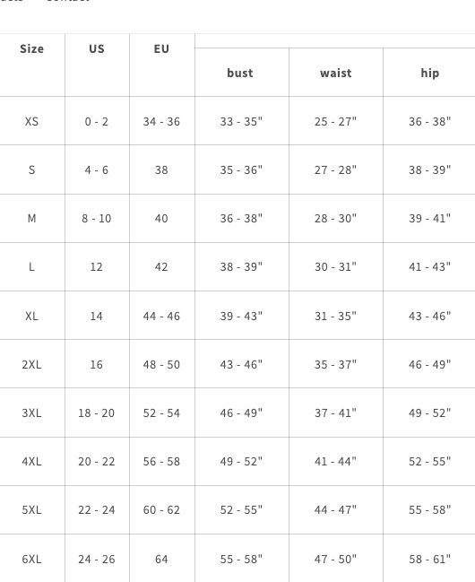 I would also add that in general I find the brand to fit a bit smaller than what the "US dress size" states on the size chart, most will want to size up 1-2 sizes.