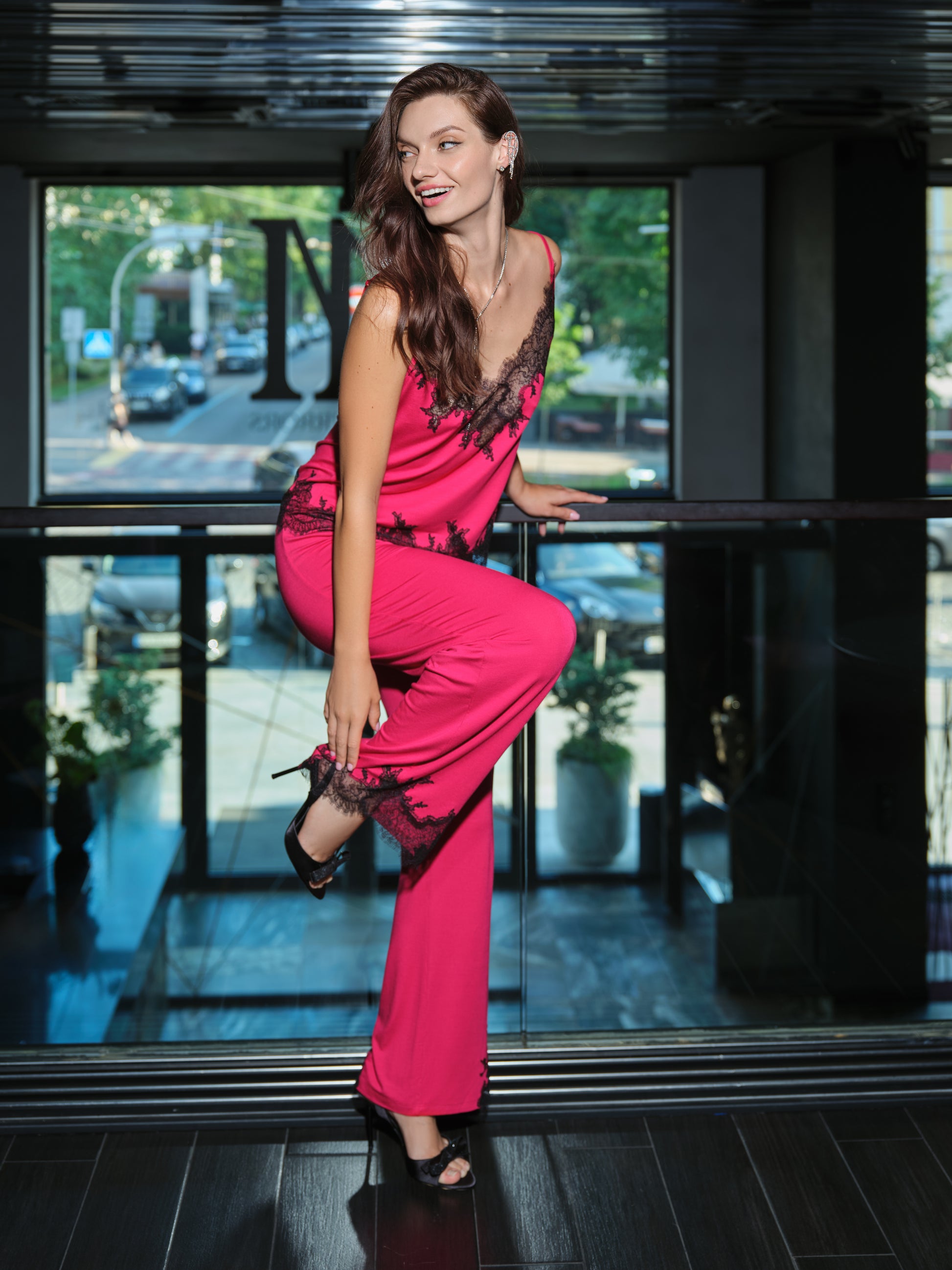 Made from a luxurious fuchsia bamboo jersey and trimmed in contrasting inky black fine French chantilly lace - this pyjama set is very glamorous and yet, perfect for everyday!