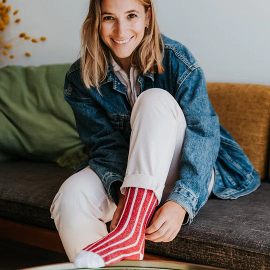 Josette is the pair of cotton and lurex socks, with lots of glitter that doesn't scratch! Josette is ideal for a day at work, she also accompanies you dancing wherever you want!