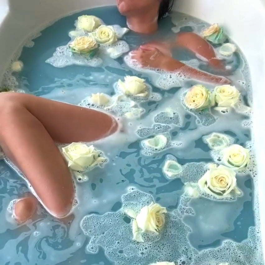 The clock strikes midnight as this Crush Bath Soak casts a violet hue throughout the bath with the majestic elements from butterfly pea flower and finely milled Bulgarian Rose. Close your eyes and inhale.