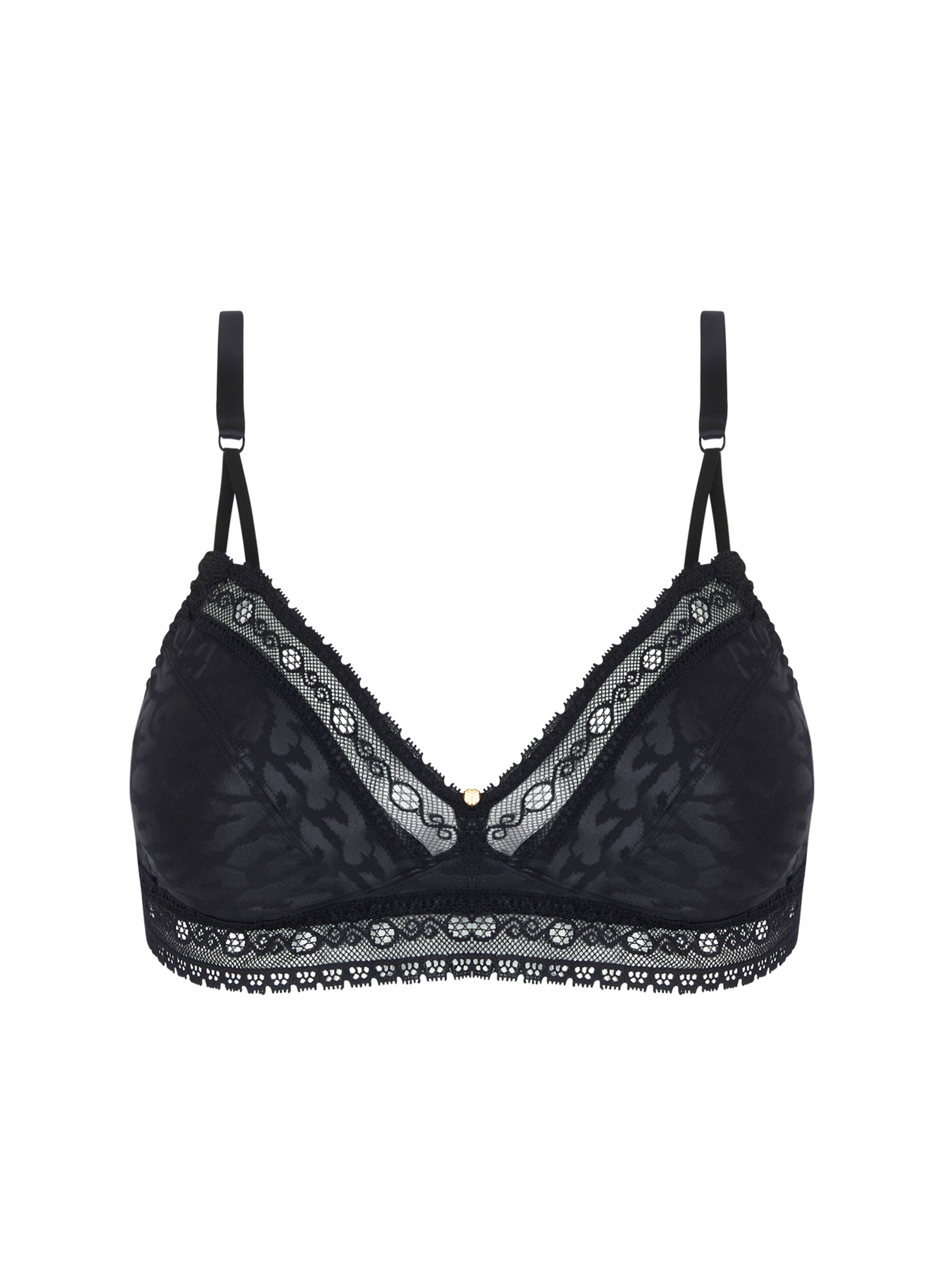 The Antigel Sensualité Fauve wireless bra combines absolute comfort and seduction. Its embossed silky fabric reveals a black panther print for modern, sensual style.