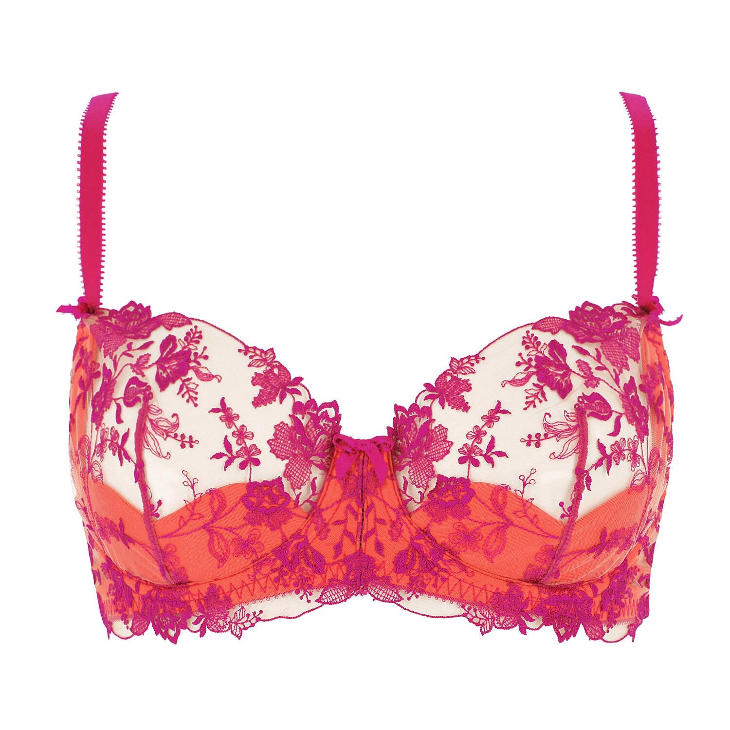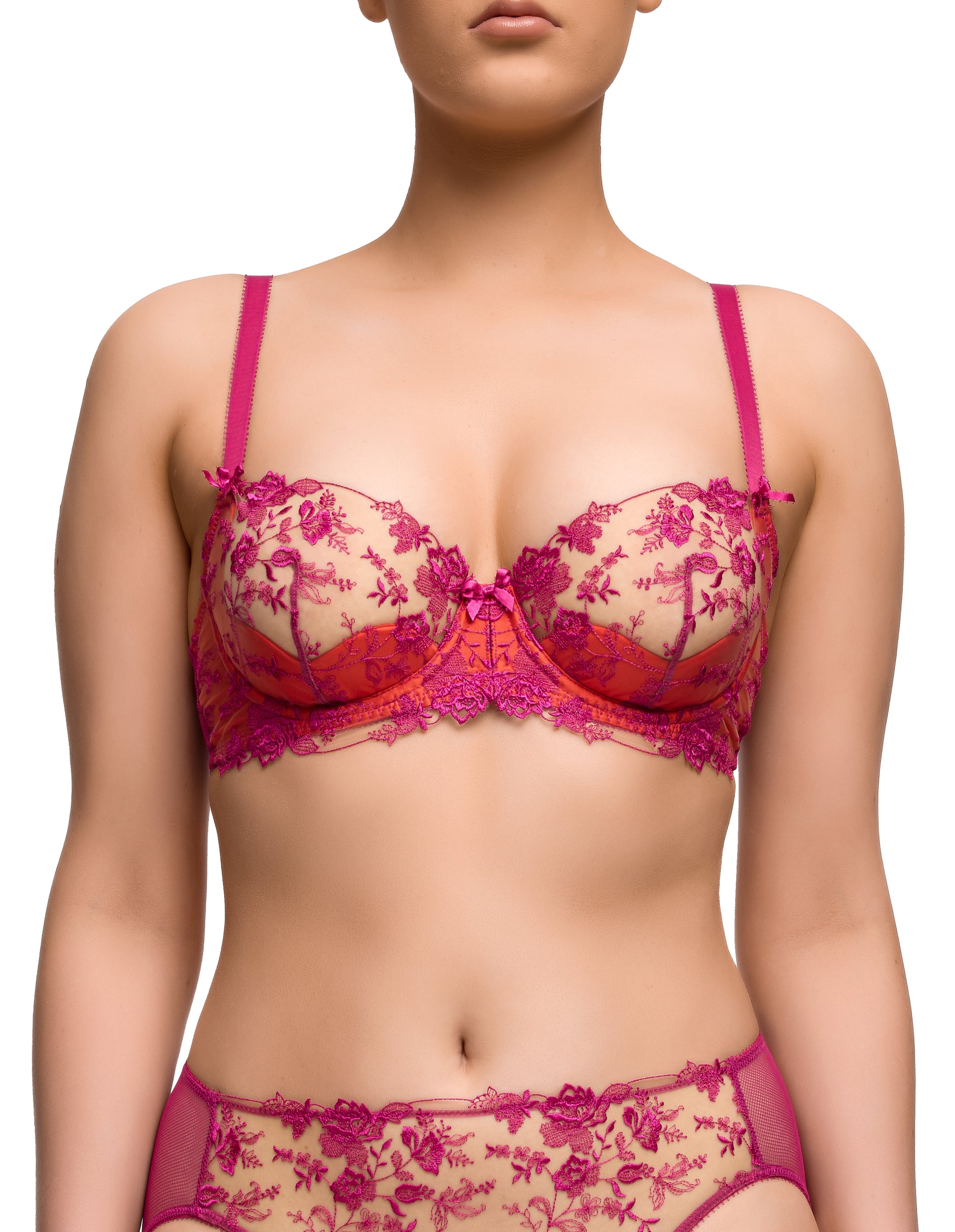 The Victresse bra is a beautifully sculptured balconette bra featuring a delicate floral embroidery on a sheer tulle mesh.
