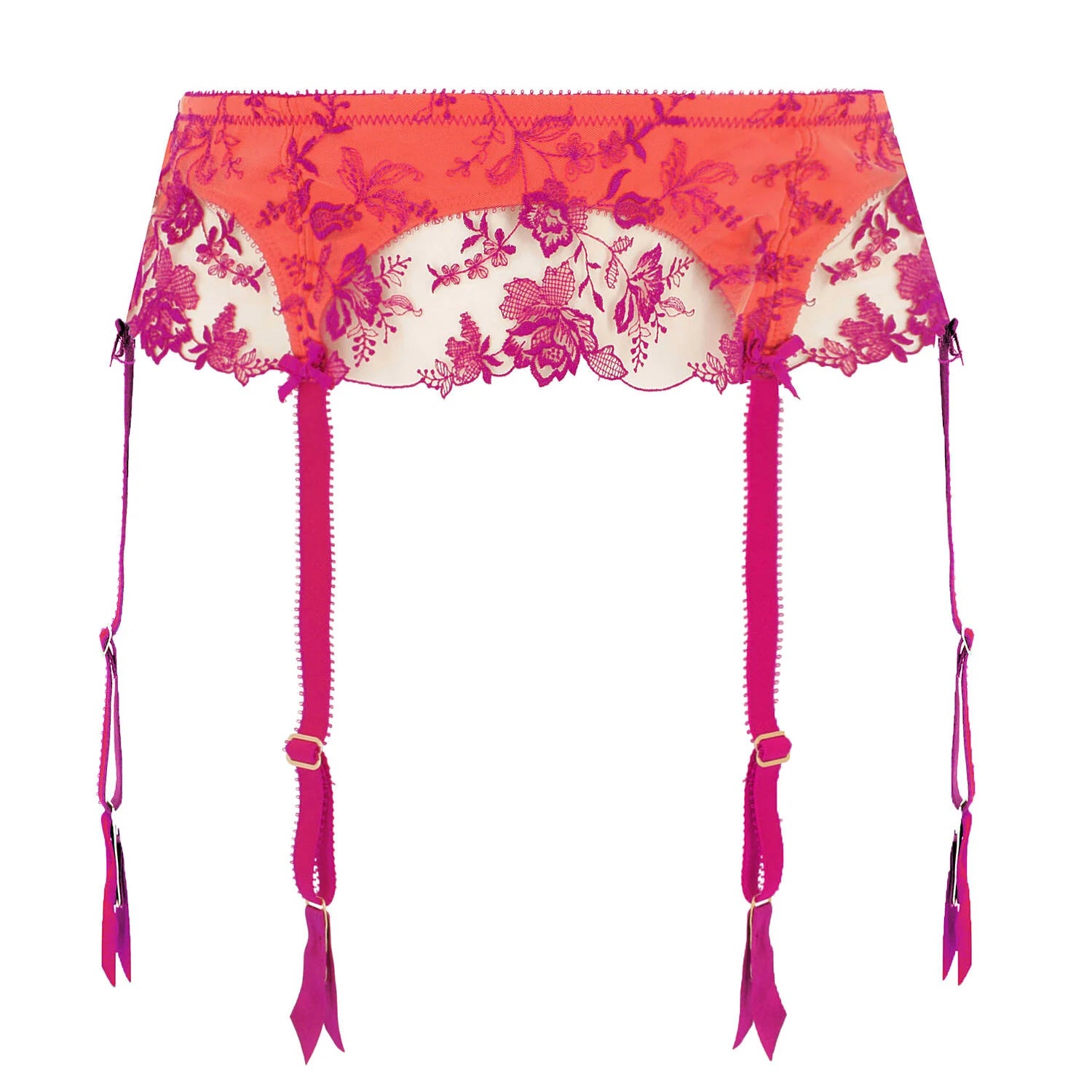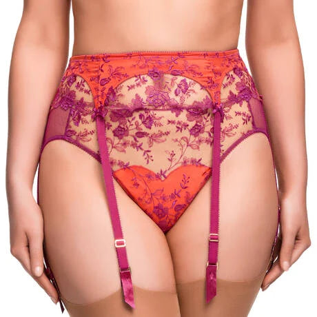 The Victresse suspender is vintage inspired and features a wide embroidered front over contrast satin which sits high at the waist. The suspender has 6 garters - trimmed with sweet satin bows! - for stability and function.This is a must for lingerie lovers!