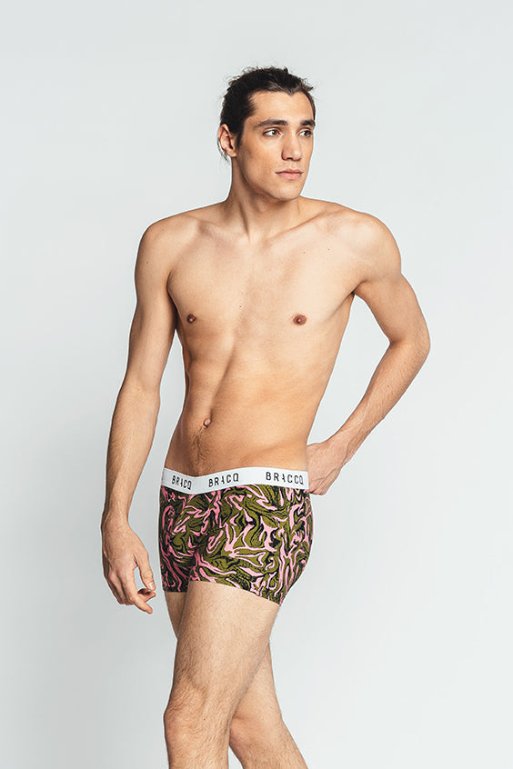 Louisa Bracq's beautiful imaginative prints on super soft stretchy cotton in a classic pouch style boxer brief, featuring a comfortable wide elastic waistband.