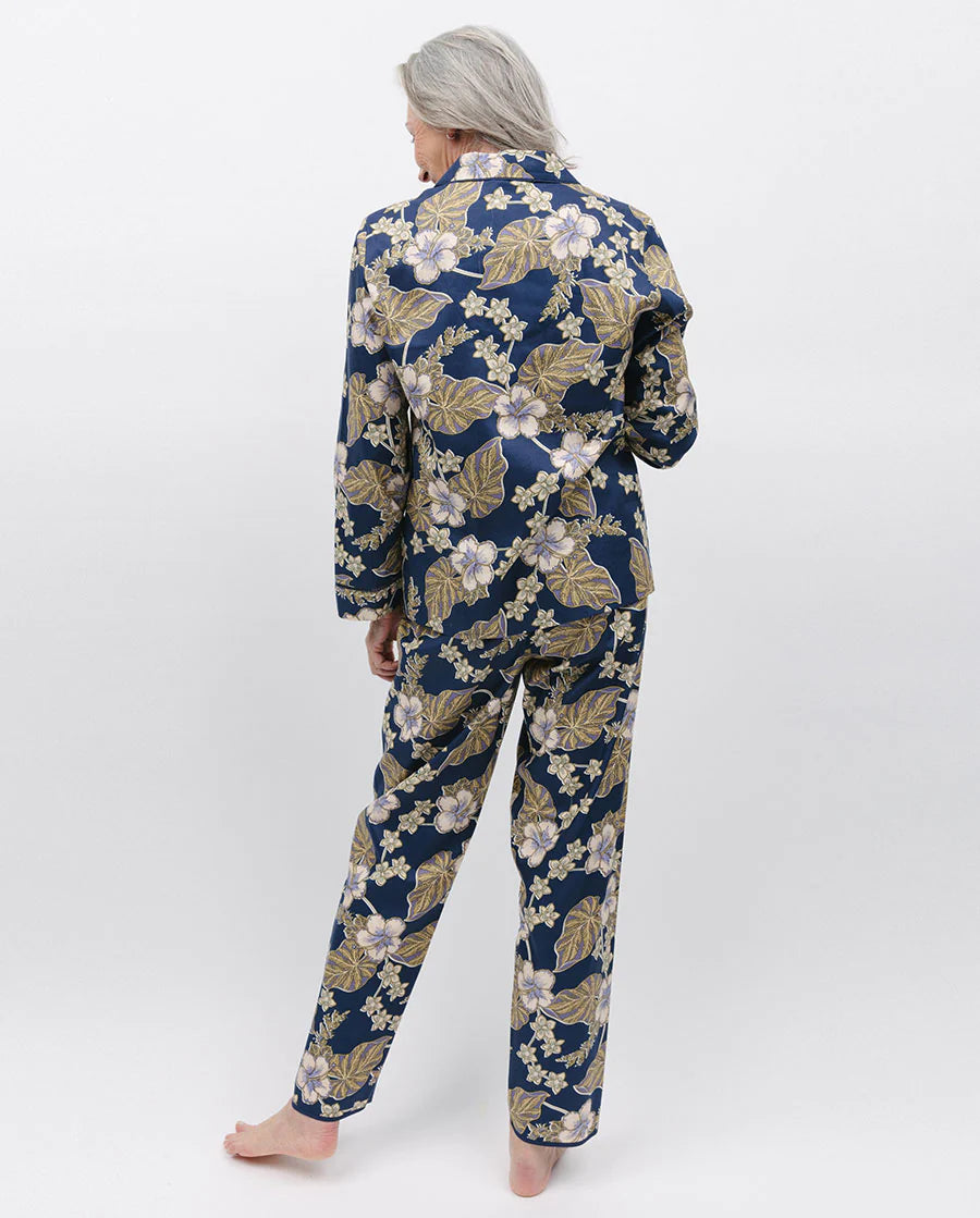 Embrace tranquility and indulge in relaxation with the Winnie navy floral print pyjama set, a perfect blend of comfort and style.